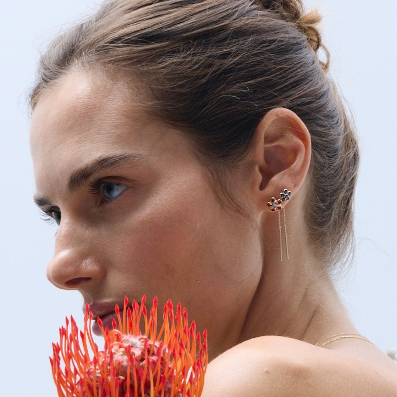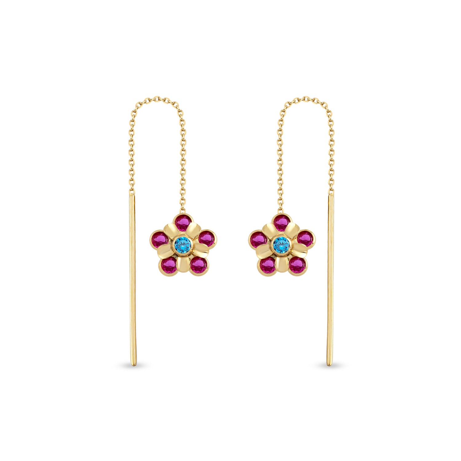 Ruby Daisy 14 Ayar Altın Kadın Küpe