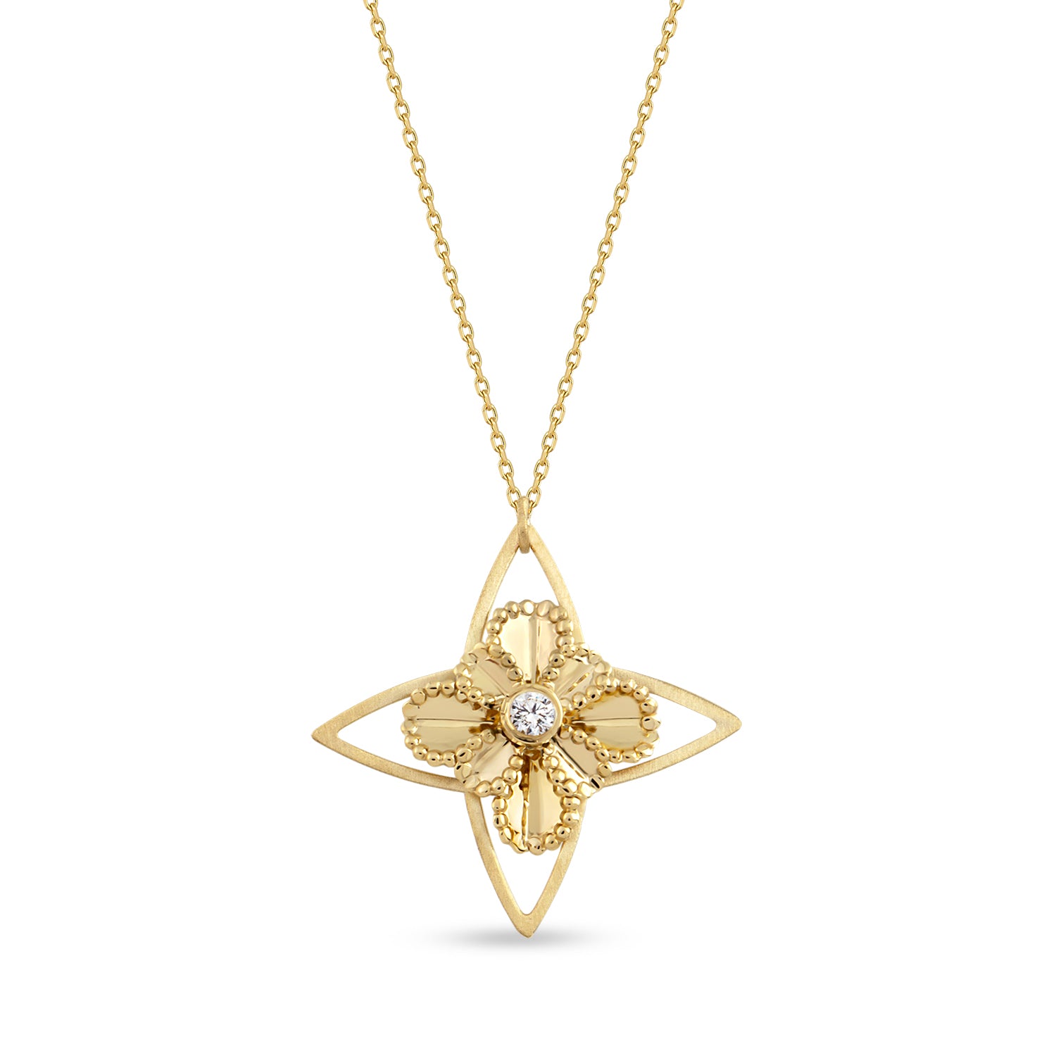 Pırlanta Taşlı Garden Lotus 14 Ayar Altın Kadın Kolye