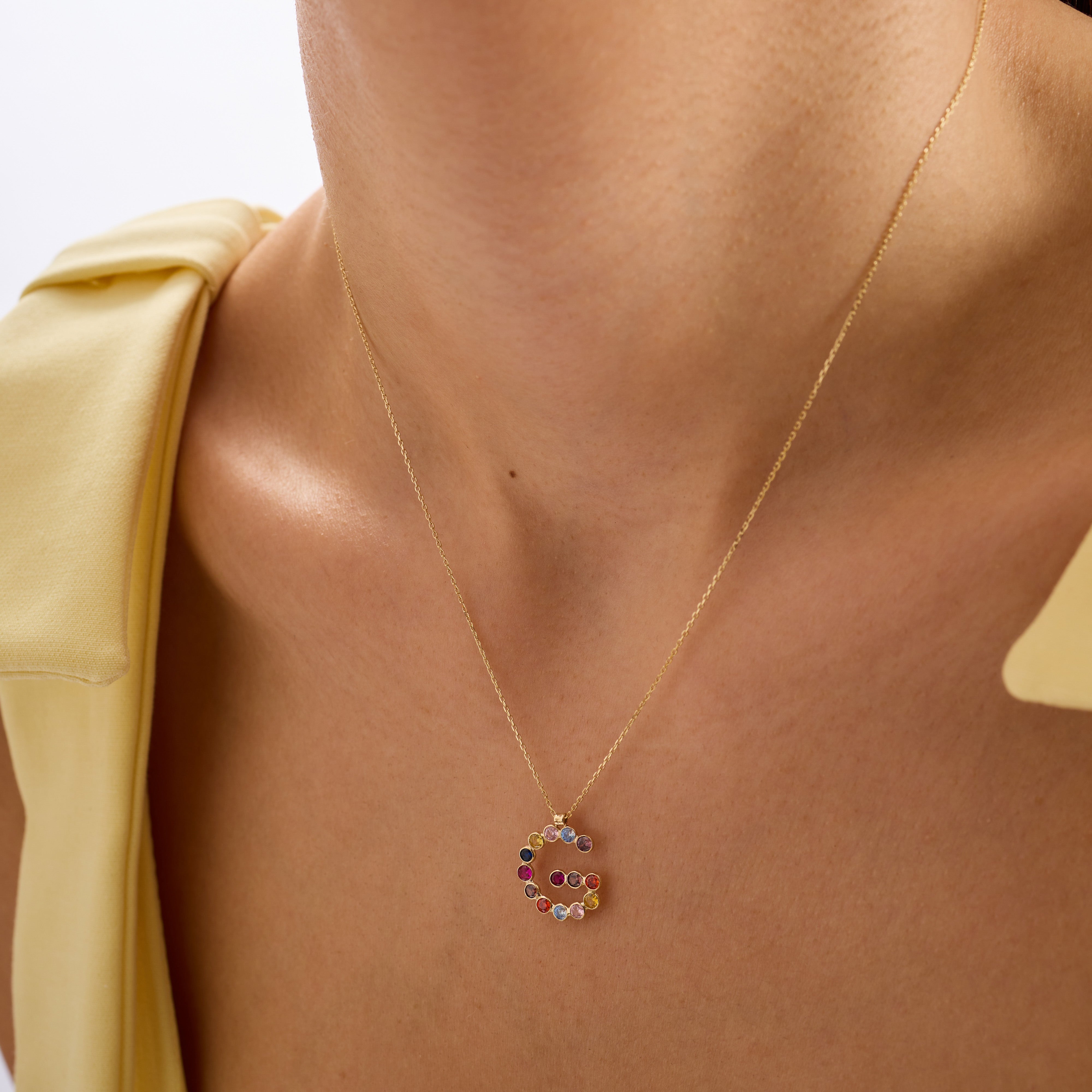 Multicolor Taşlı 14 Ayar Altın Kadın Kolye