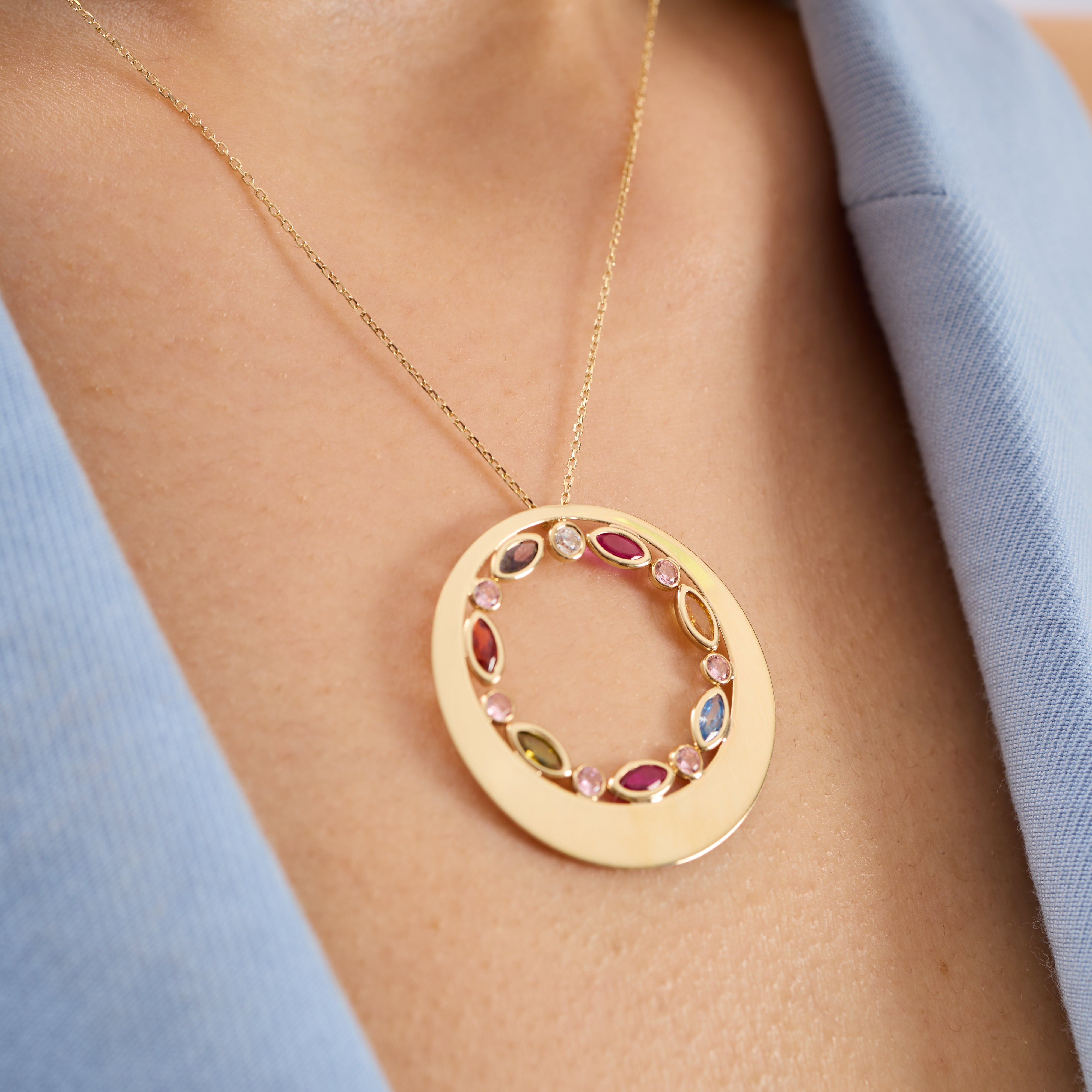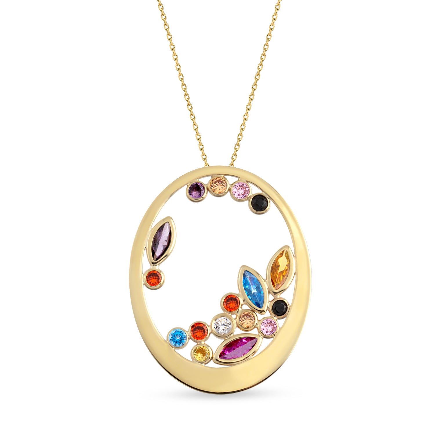 Rainbow Star Pırlanta Taşlı 14 Ayar Altın Kadın Kolye