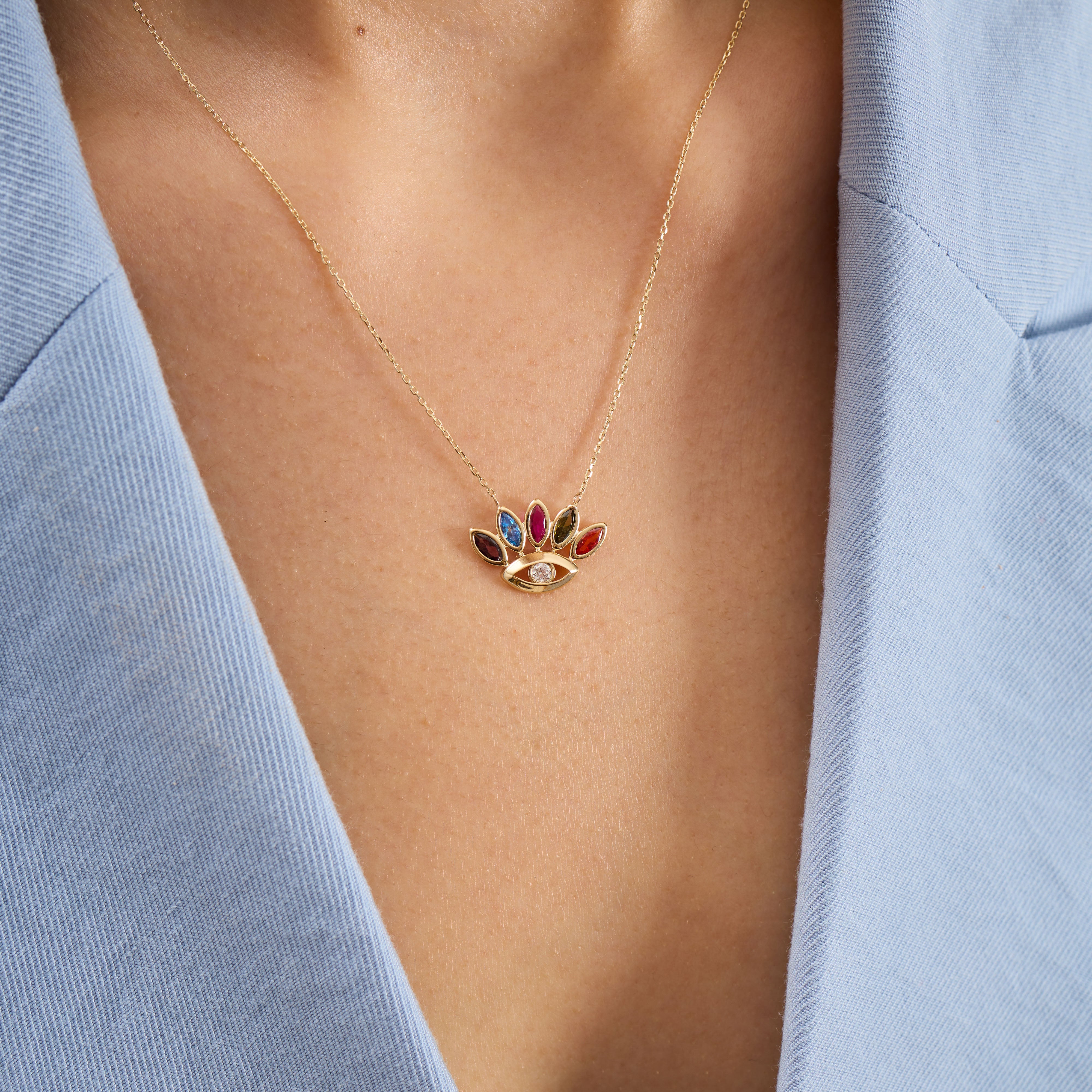 Eye Pırlanta Taşlı 14 Ayar Altın Kadın Kolye