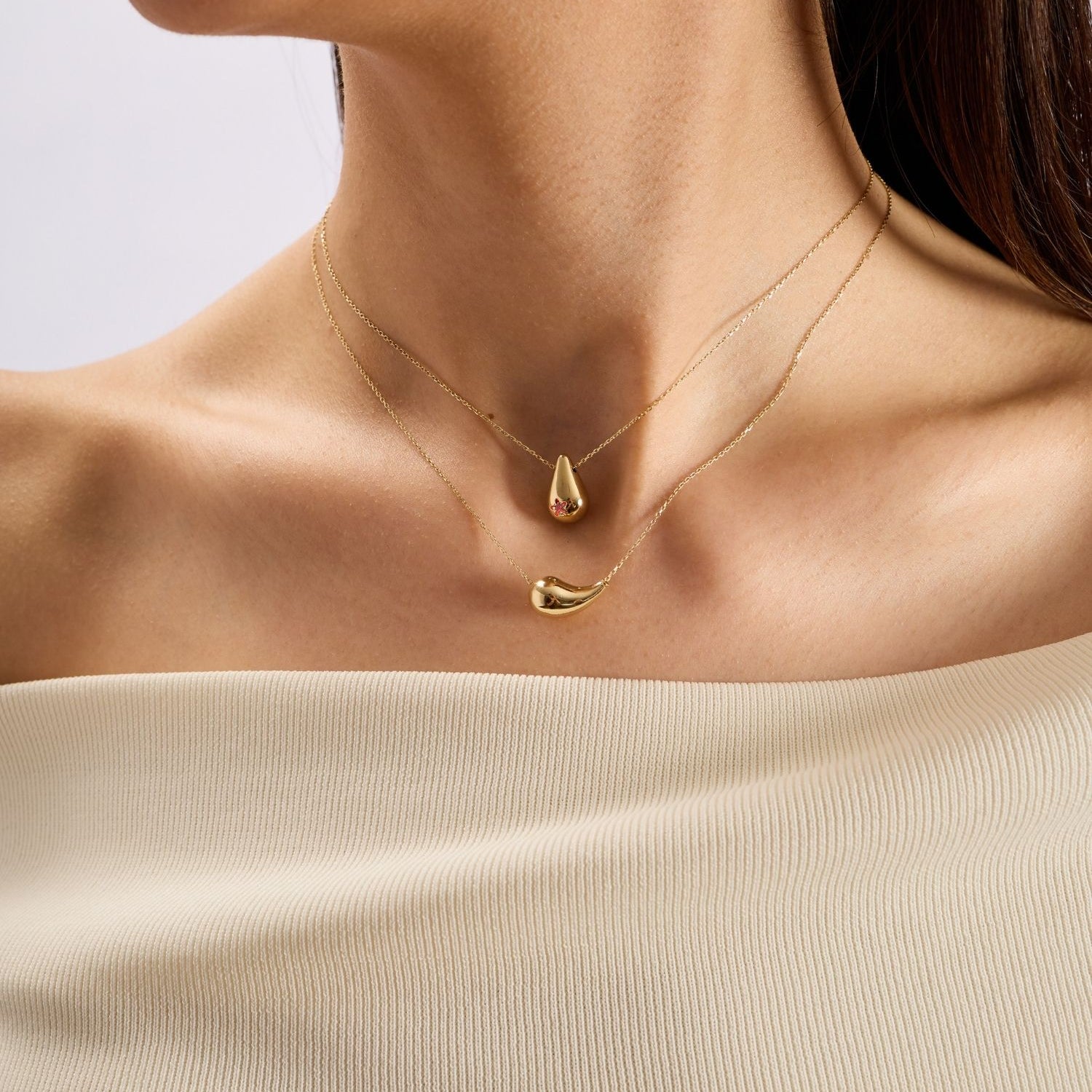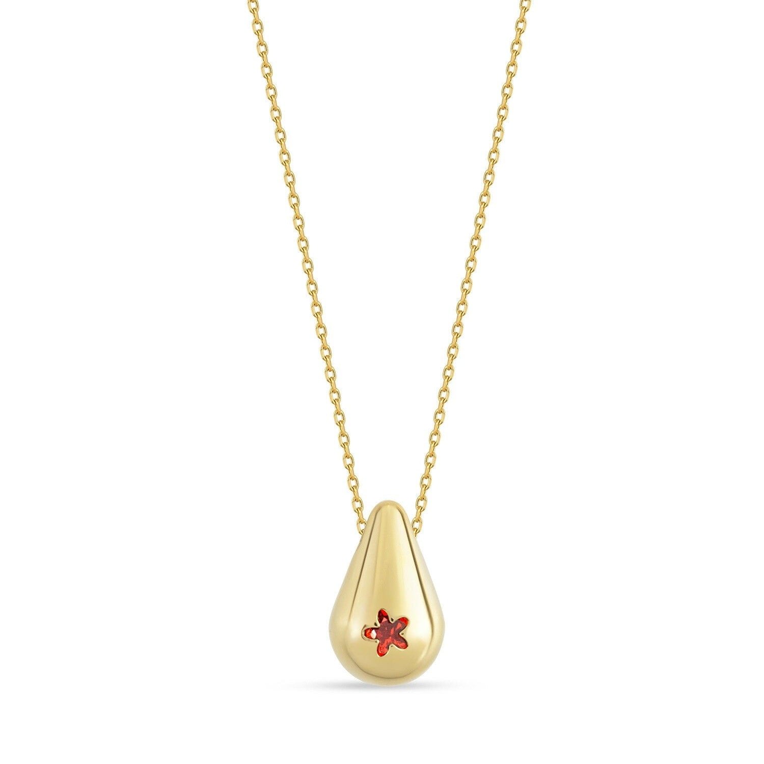 Ruby Star Teardrop 14 Ayar Altın Kadın Kolye