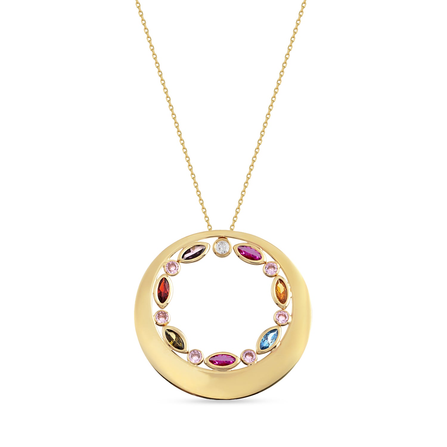 Pırlanta Taşlı Multicolor 14 Ayar Altın Kadın Kolye