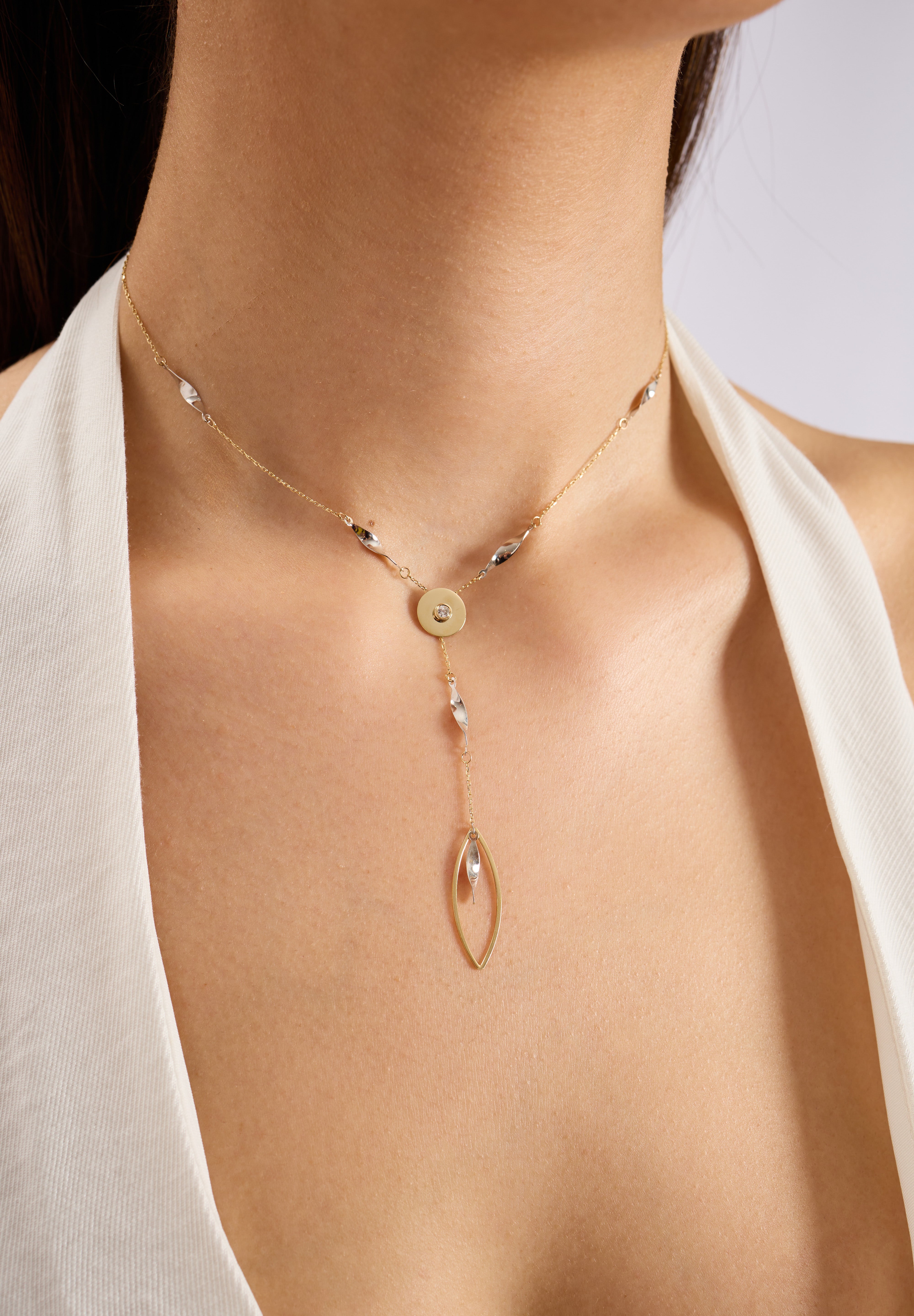 14 ayar altının sıcak ışıltısı, pırlantaların göz alıcı parlaklığıyla birleşerek hem günlük stile rafine bir incelik katar hem de özel anlarda dikkat çekici bir ışık oyunu yaratır. Bu kolye, hem koruyucu bir tılsım hem de zarafeti ışıkla taşımak isteyenler için anlam yüklü bir semboldür.