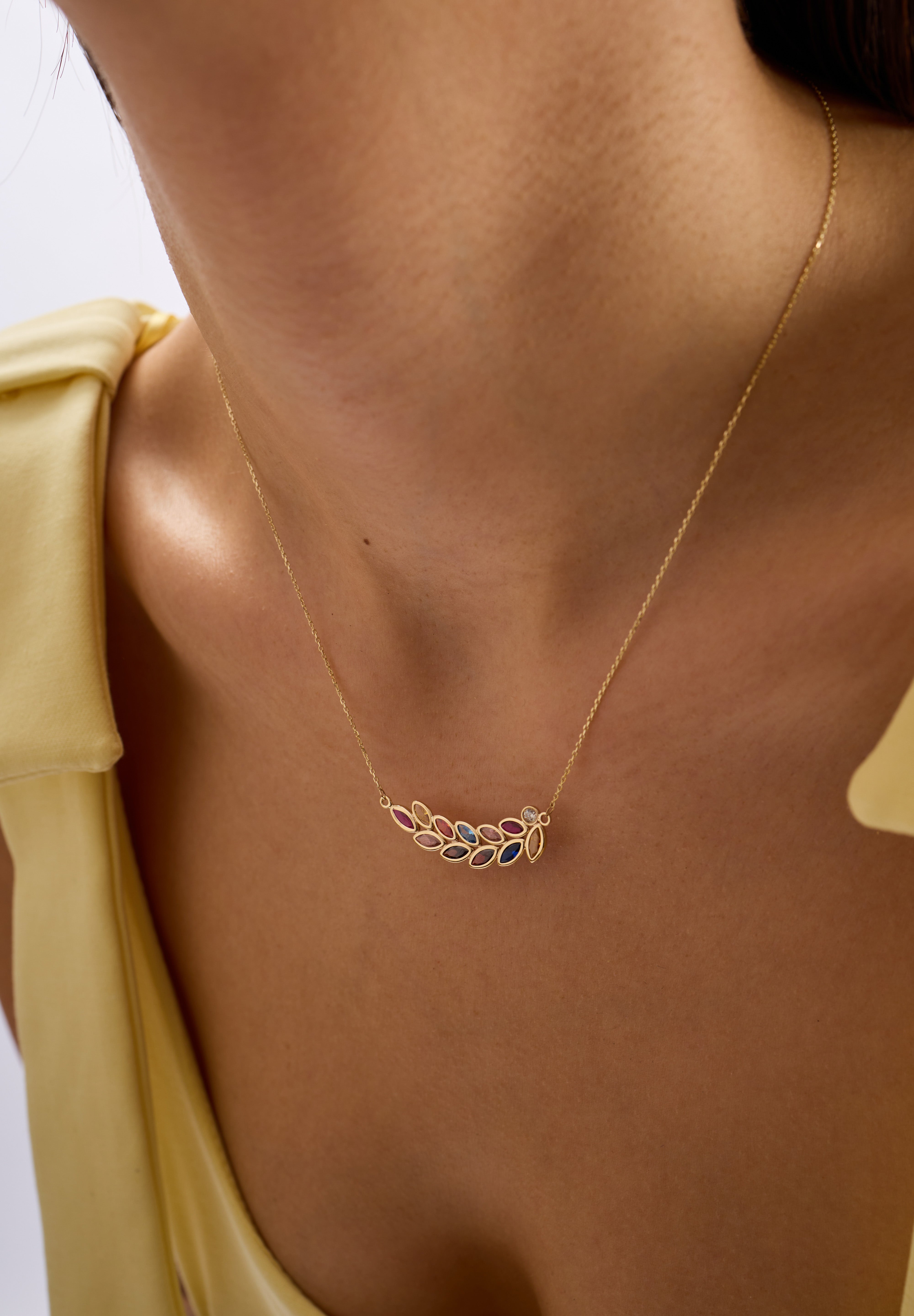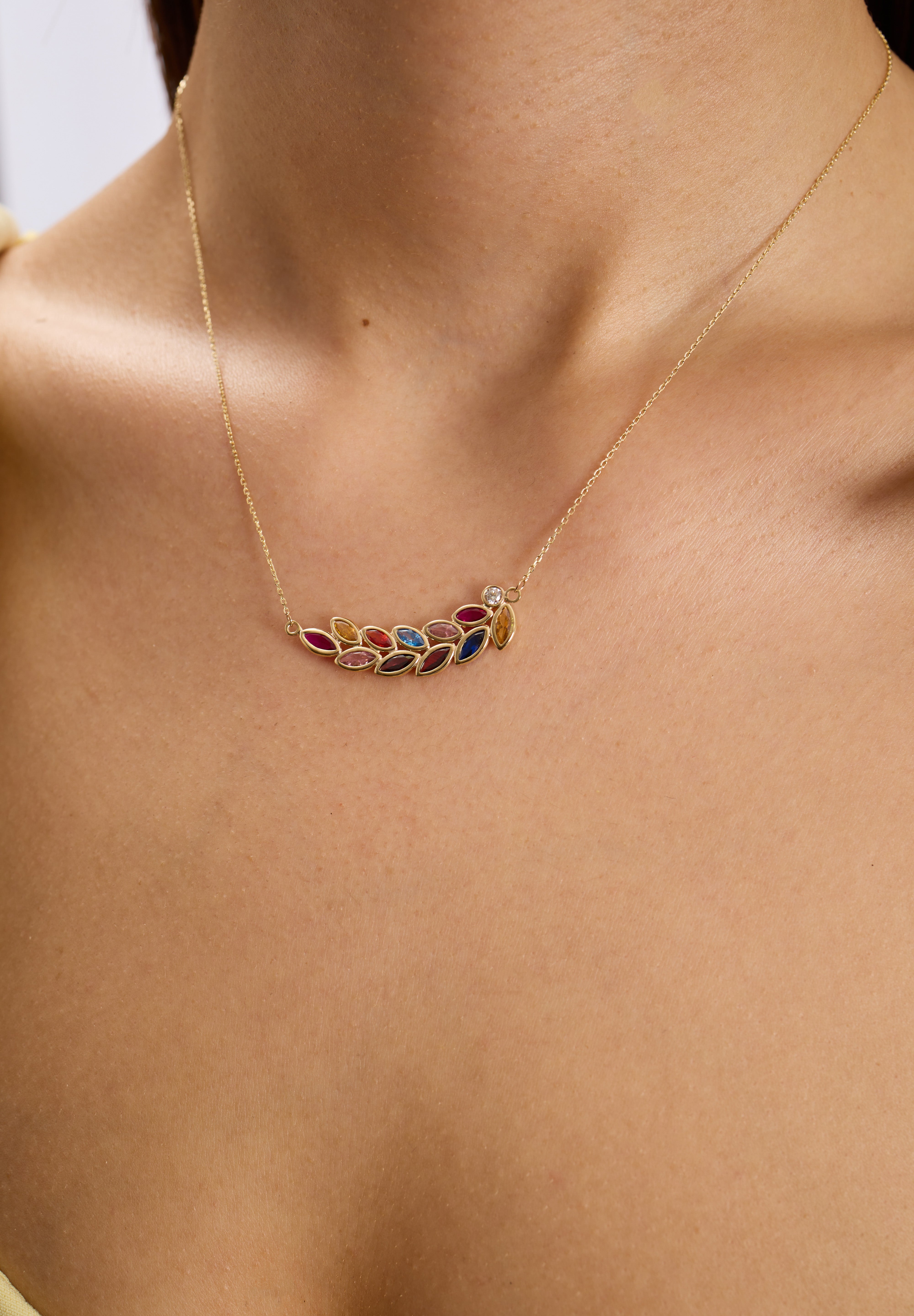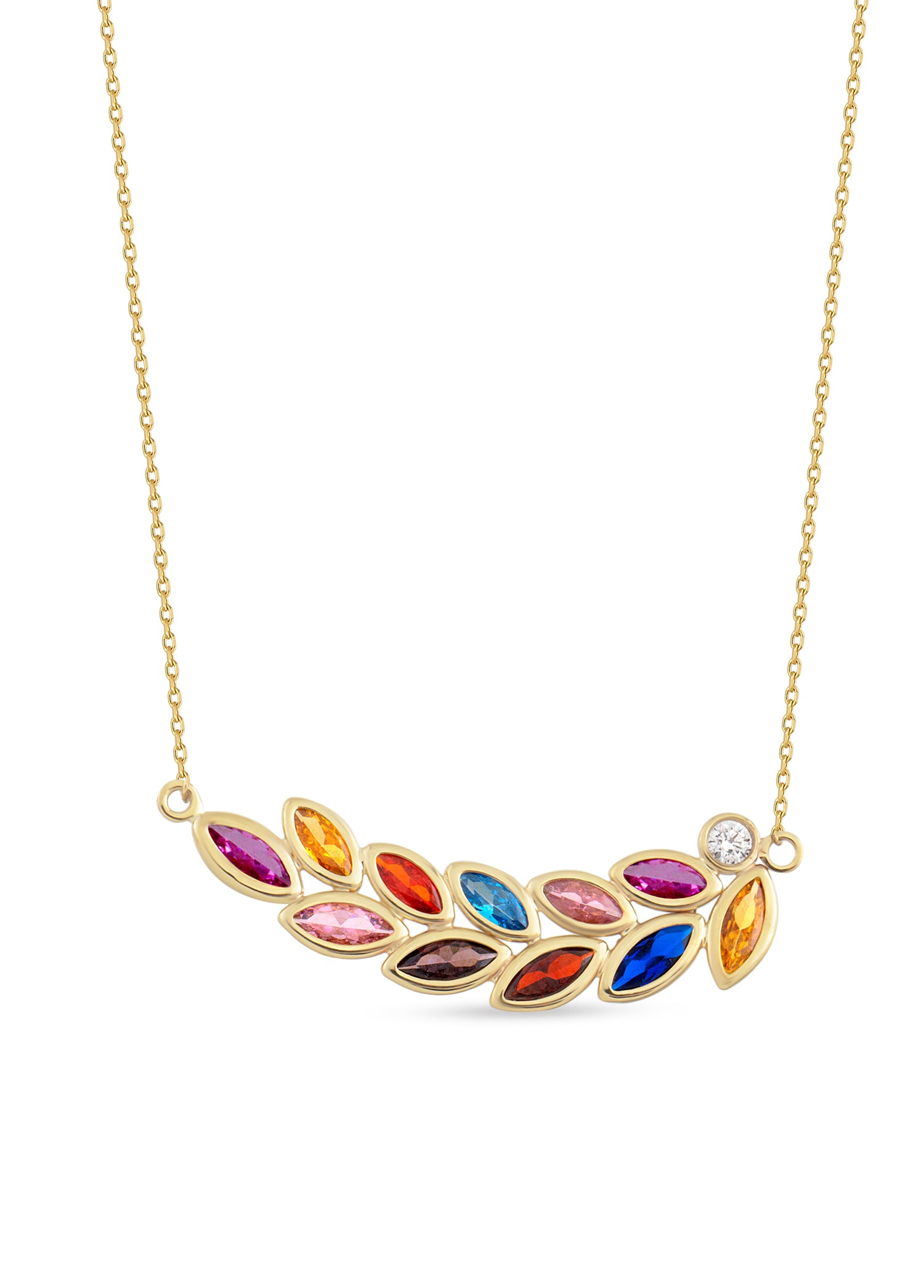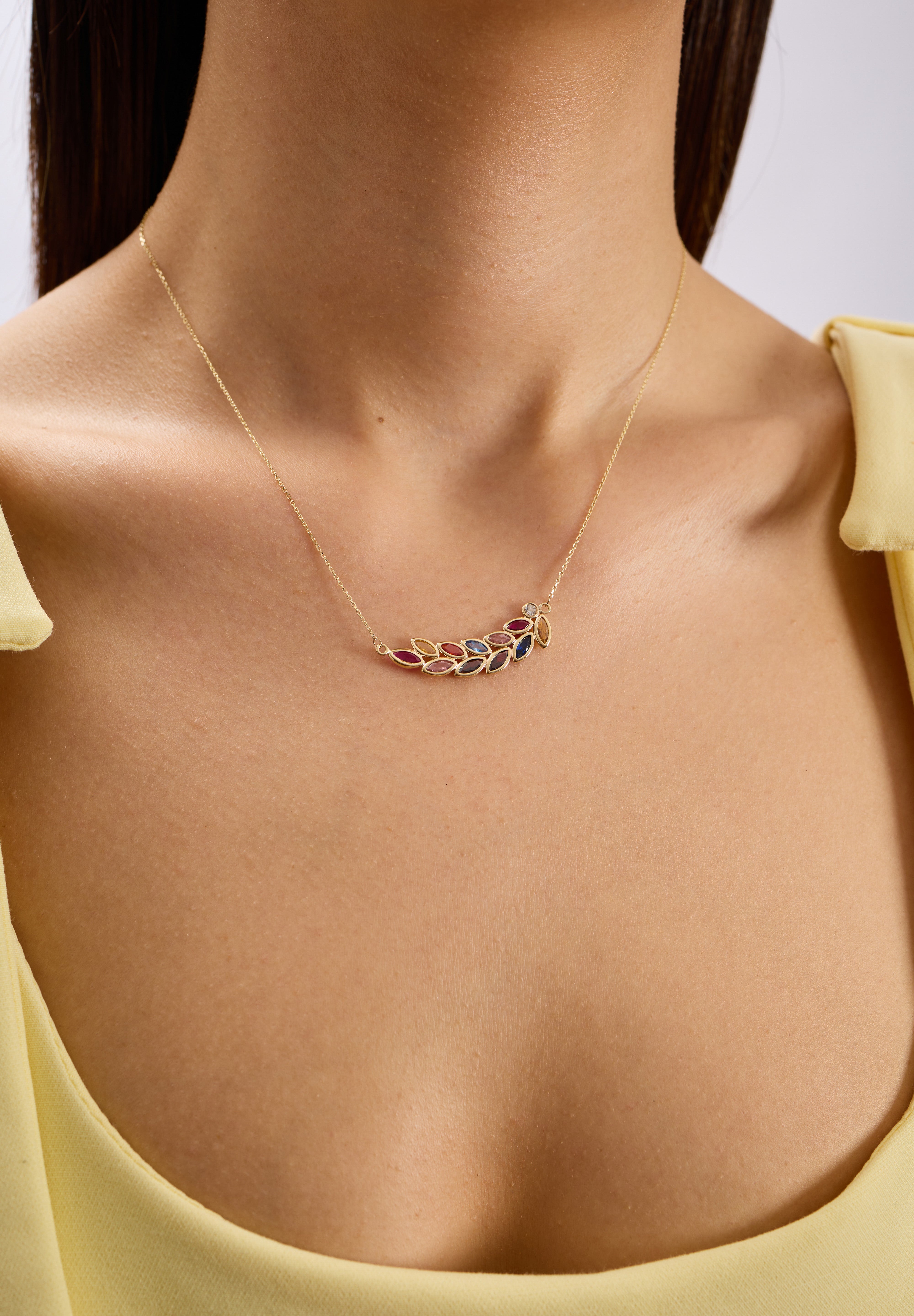 Bunch Pırlanta Taşlı 14 Ayar Altın Kadın Kolye; bir araya gelişin güzelliğini, zarafeti ve paylaşmanın değerini simgeleyen özel bir tasarımdır. Doğadaki çiçek demetlerinden ilham alan bu zarif parça, farklı renklerin ve enerjilerin birleşerek oluşturduğu uyumu modern bir mücevher formuna taşır.