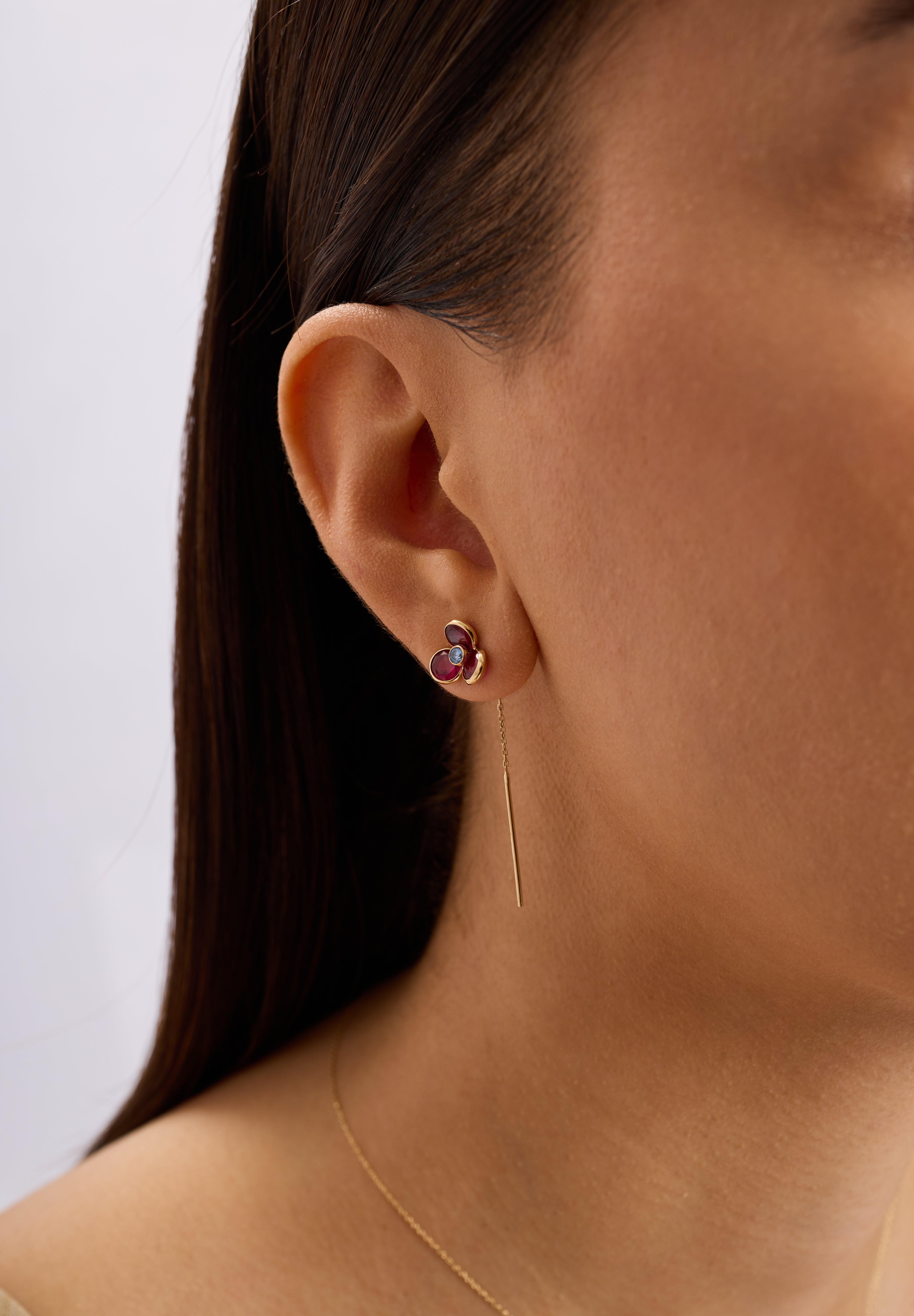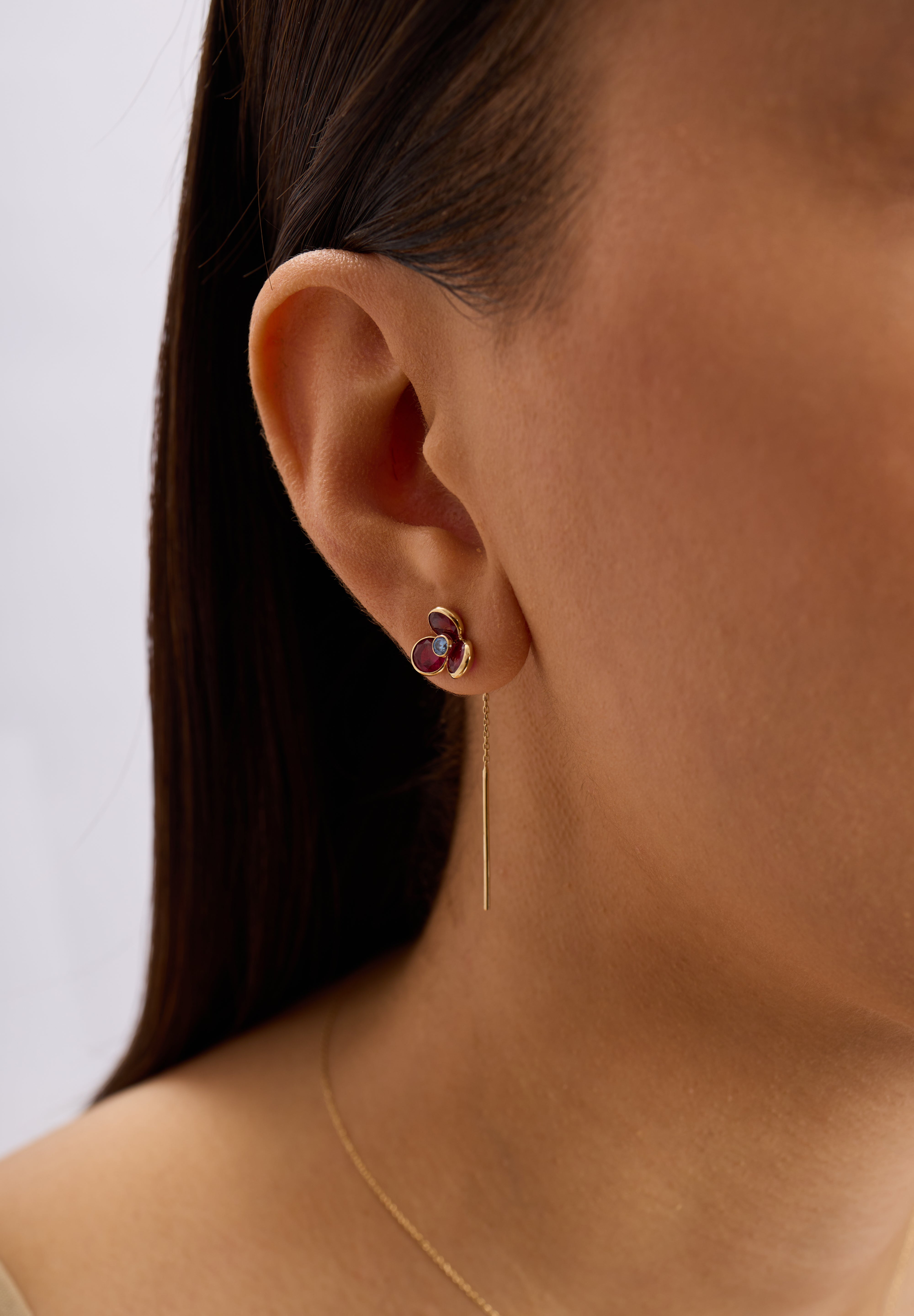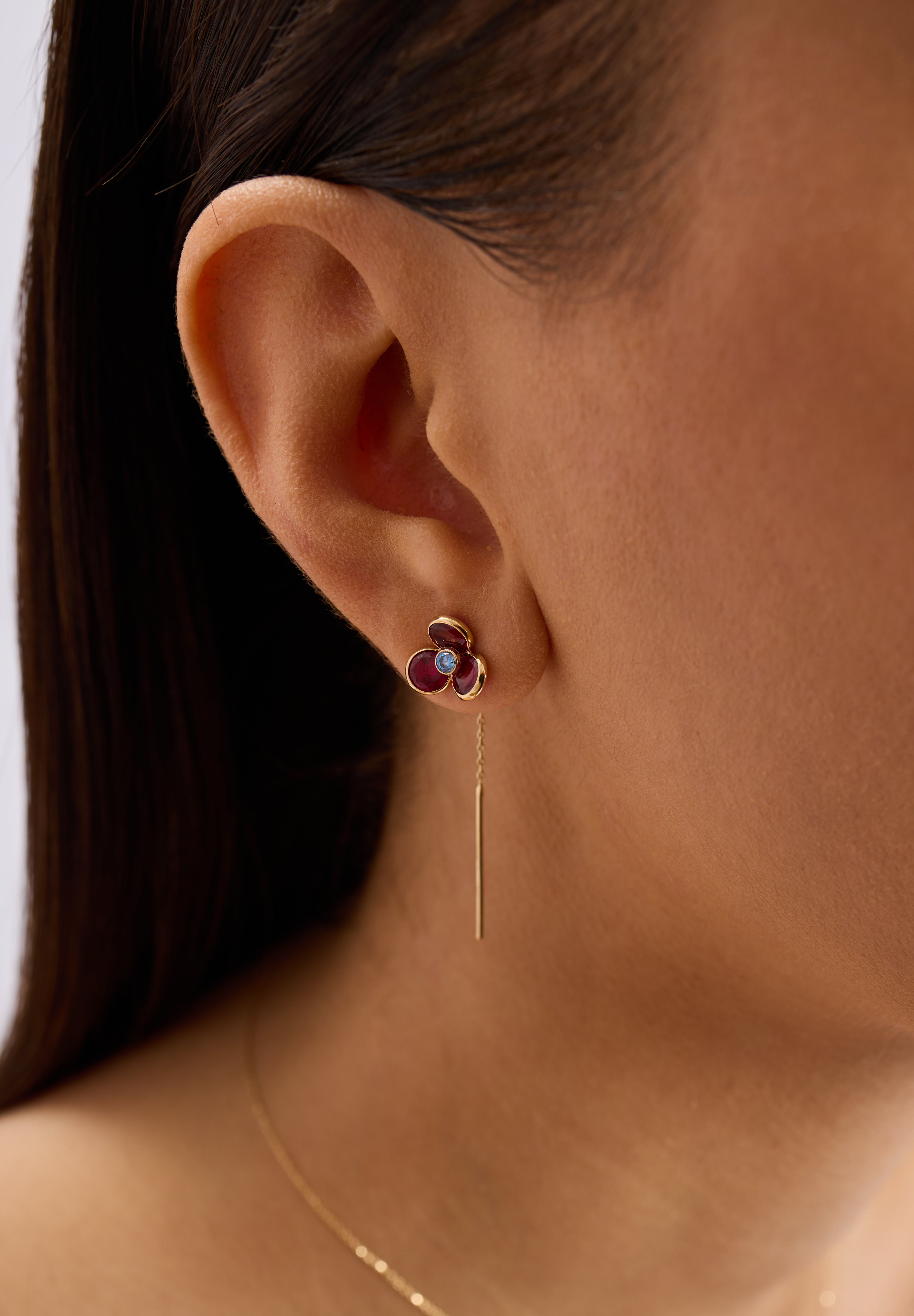 Caliora’nın ikonik formunun zarif ve hareketli bir yorumu olan Caliora Amethyst Küpe, mor tonların derinliği ve merkezdeki mavi taşın canlı kontrastıyla dikkat çeker. Zincir detayı sayesinde hafif bir akış hissi kazanan tasarım, 14 ayar altının sıcak ışıltısıyla dengelenerek modern ve sofistike bir görünüm sunar.