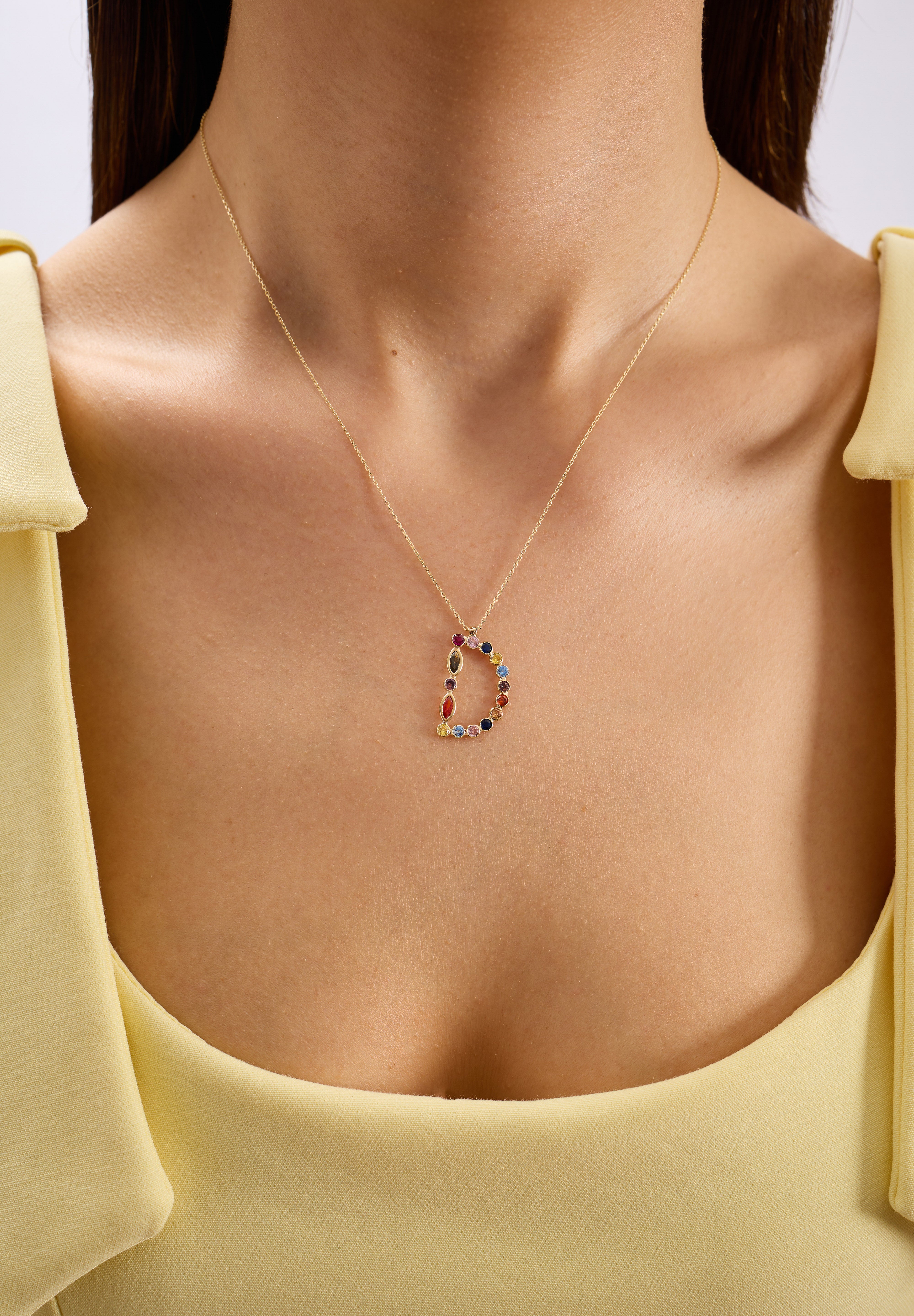 İncelikle işlenmiş 14 ayar altın yapısı, sade ve zarif tasarım diliyle birleşerek hem günlük stile sofistike bir dokunuş katar hem de özel anlarda anlamlı bir ifade yaratır. Harf formu, takan kişinin kendine özgü hikâyesini ve bireysel yolculuğunu zarif bir mücevher parçasına dönüştürür.
