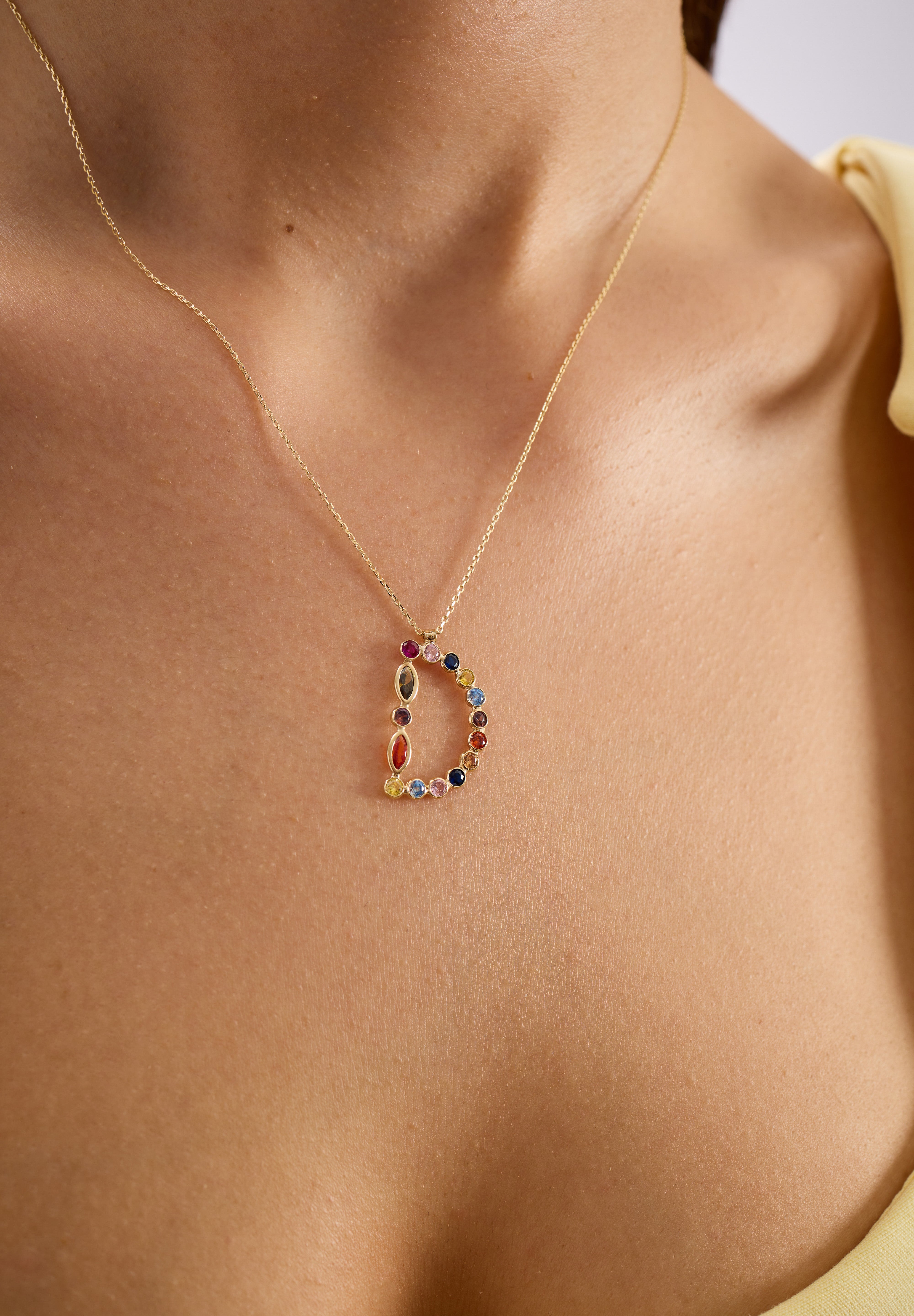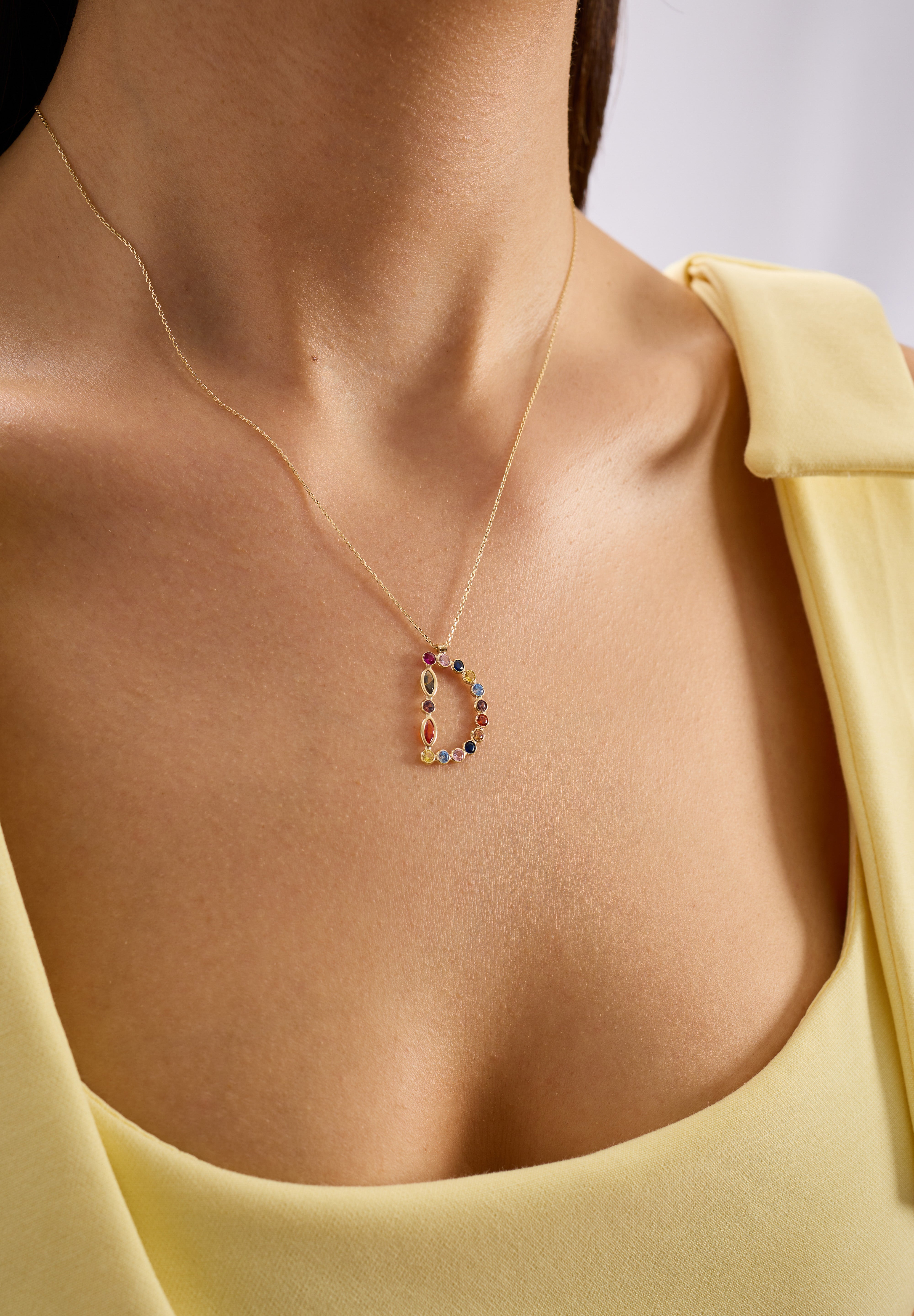 D Harf Formlu Kadın Altın Kolye; kişisel kimliği, güçlü bir duruşu ve zarif bir kendini ifade biçimini simgeleyen modern bir tasarımdır. D harfinin yumuşak ama belirgin formu; hayatta kendi yolunu çizme cesaretini, içsel gücü ve duygusal derinliği temsil eder.