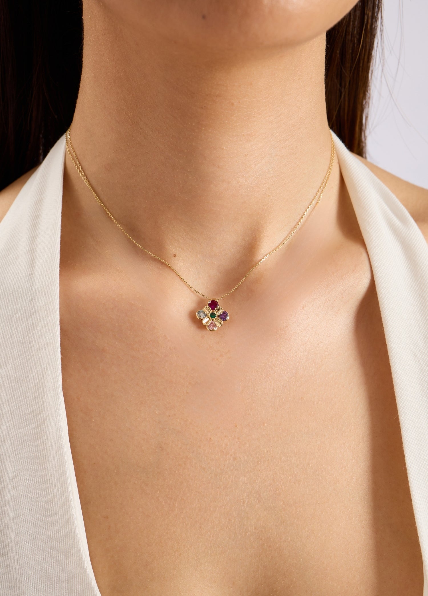 Eden Blush 14 Ayar Altın Kadın Kolye; cennetin dingin güzelliğini, yumuşak duyguları ve zarafetin en narin hâlini simgeleyen özel bir tasarımdır. “Eden” ismi doğanın kusursuz uyumunu çağrıştırırken, “Blush” yaşamın içten gelen pembe ışıltısını ve utangaç bir mutluluğun sıcak tonlarını temsil eder.