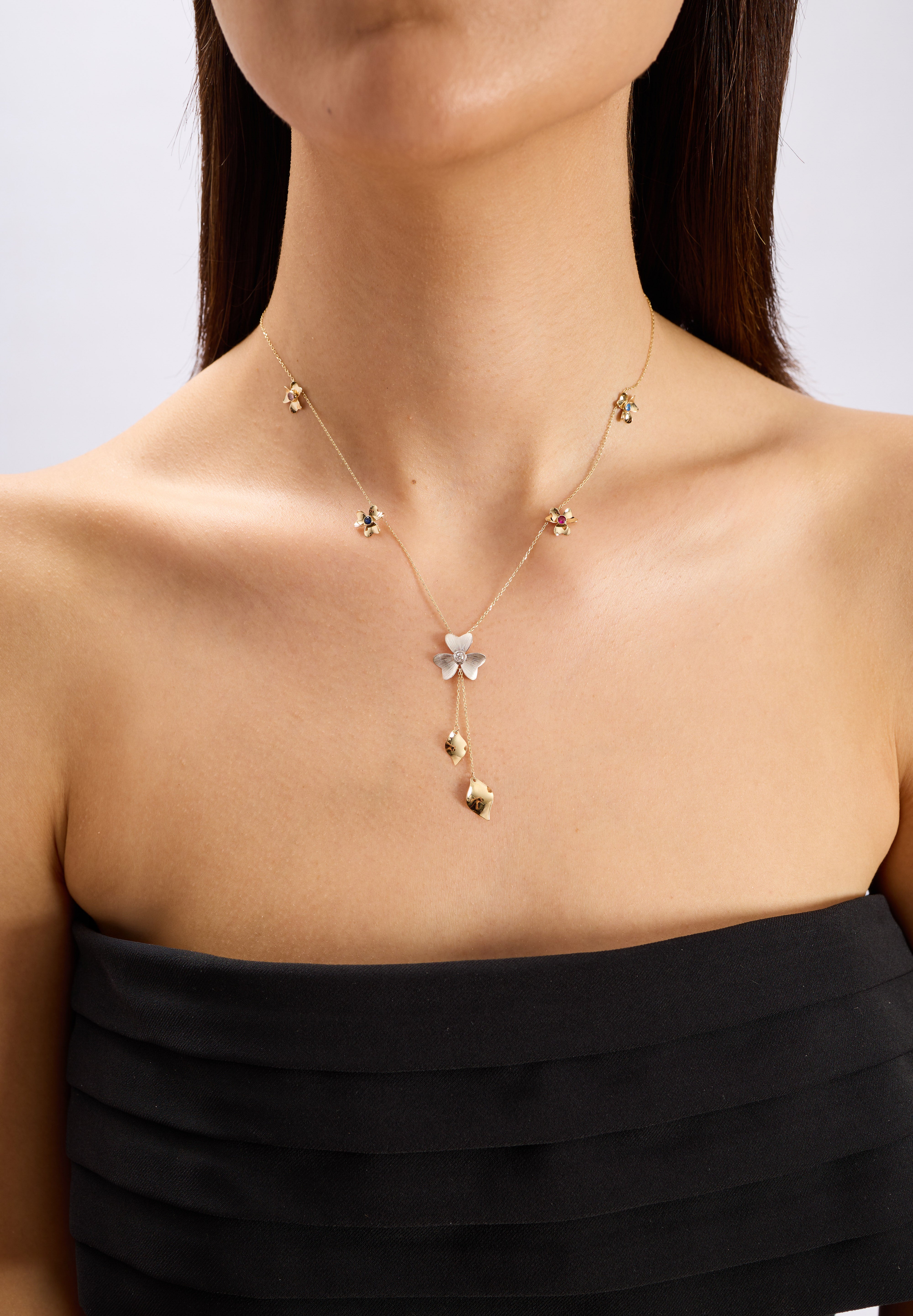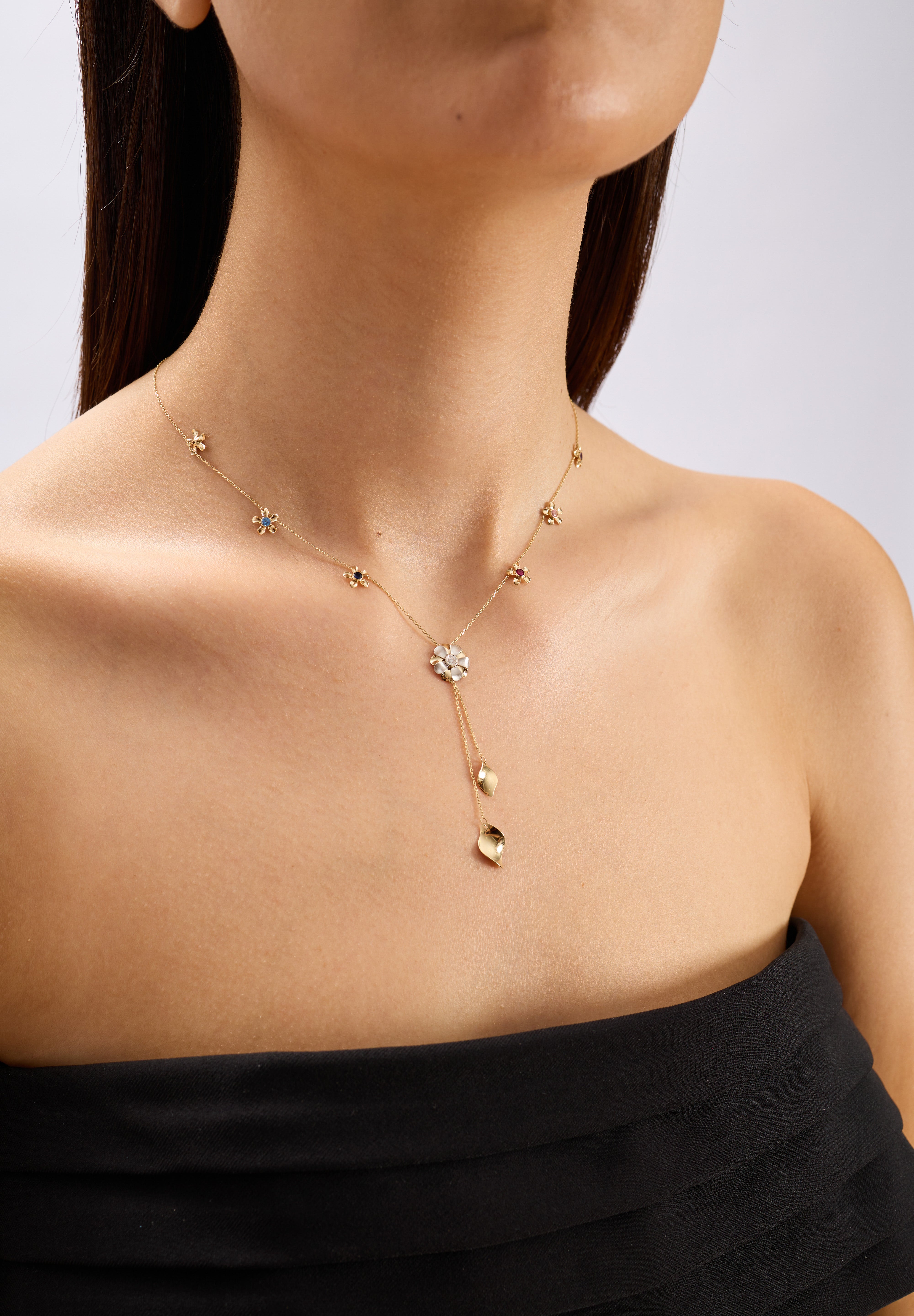 Flower Tassel Pırlanta Taşlı 14 Ayar Altın Kadın Kolye
