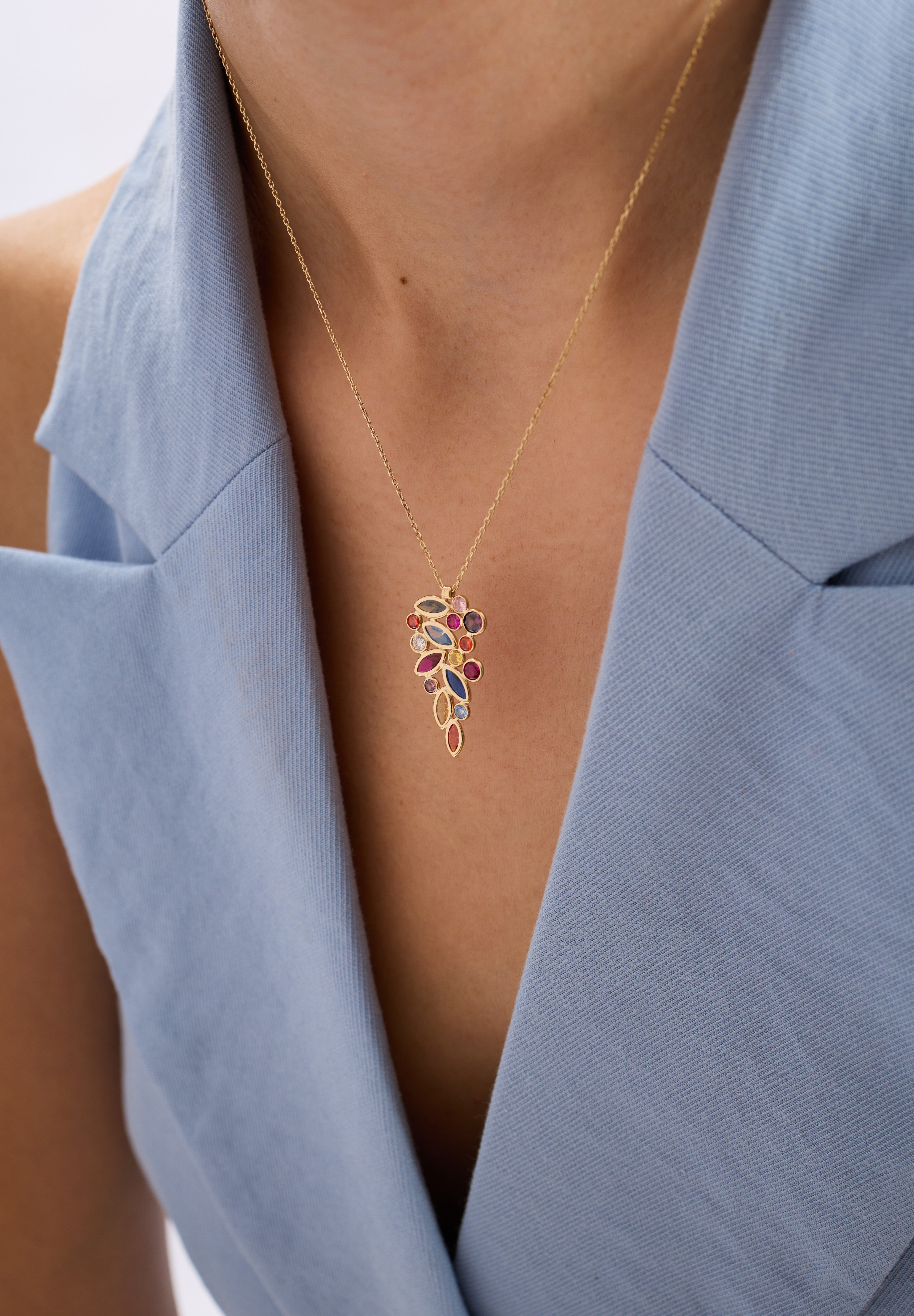 Garden Grape Pırlanta Taşlı 14 Ayar Altın Kadın Kolye; doğanın bereketini, zarif büyümeyi ve sevgiyle kurulan bağları simgeleyen özel bir tasarımdır.Bahçelerin canlı ruhu ve üzüm salkımının doğal zarafeti bu modern mücevher formunda yeniden yorumlanmıştır.