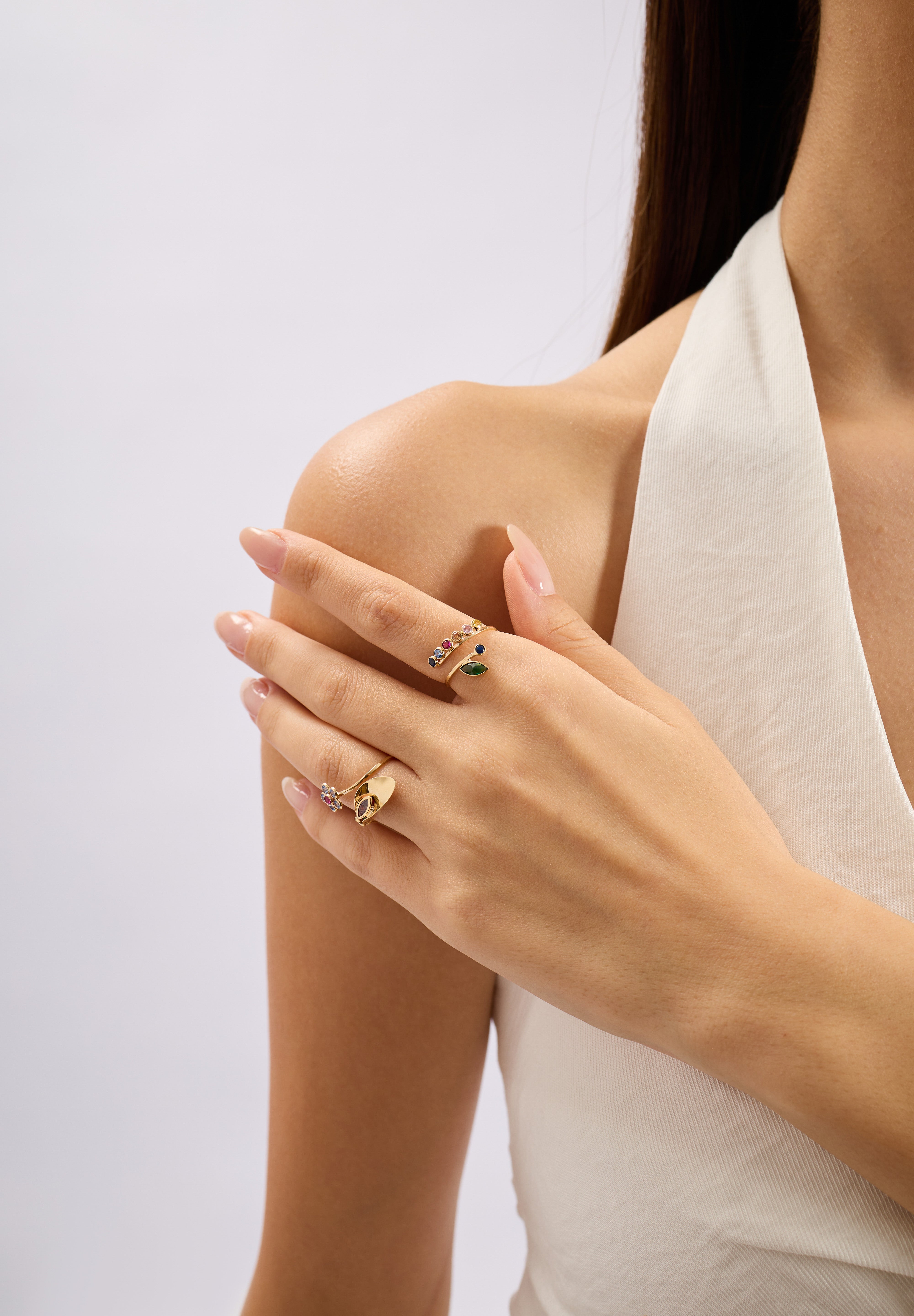 14 ayar altının sıcak ışıltısı, ince ve özenli işçilikle birleşerek hem günlük stile romantik bir incelik katar hem de özel anlarda anlamlı bir parıltı sunar. Taşların saf ve doğal güzelliği, umut ve sevgi dolu yeni başlangıçları hatırlatan zamansız bir sembole dönüşür.