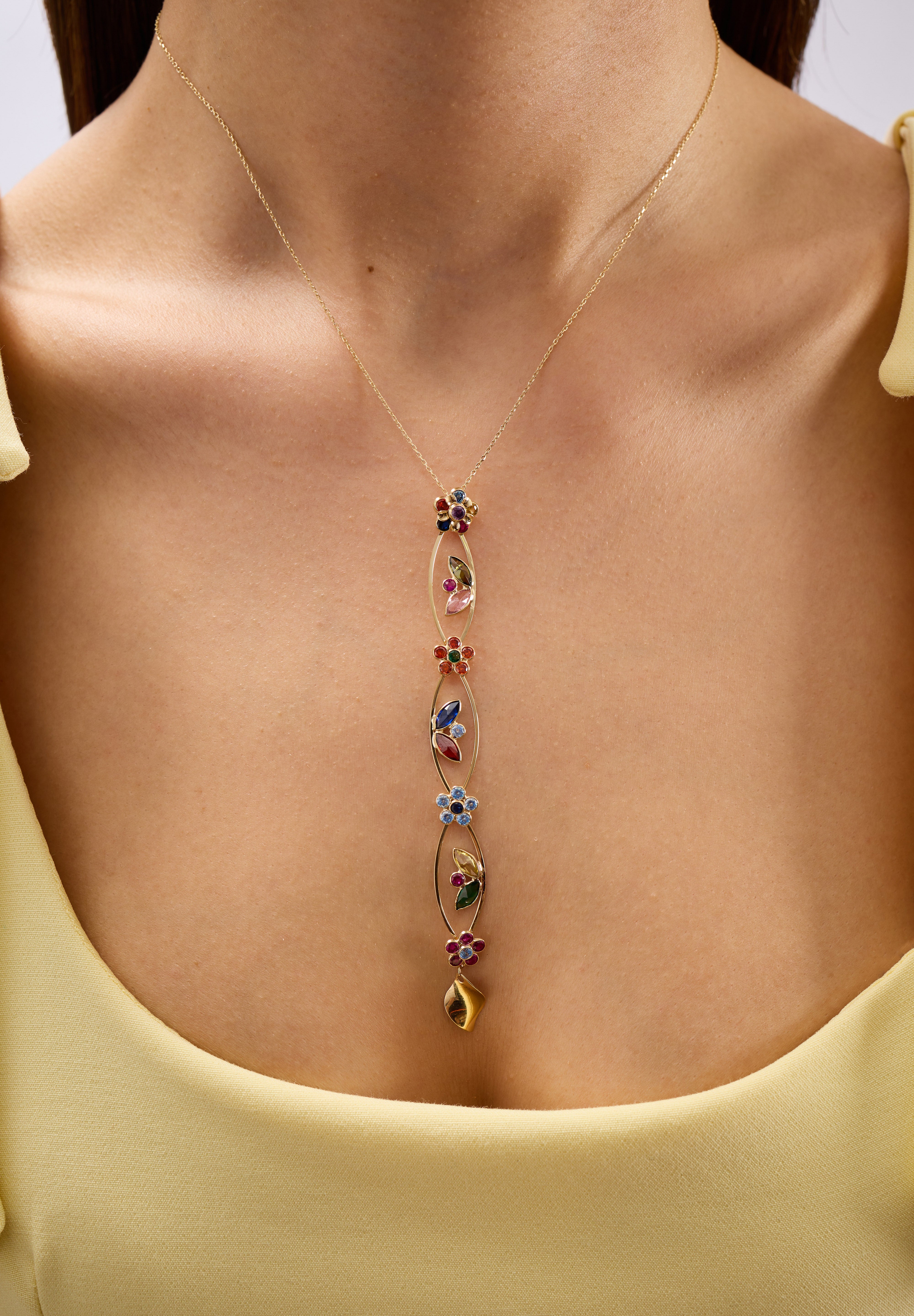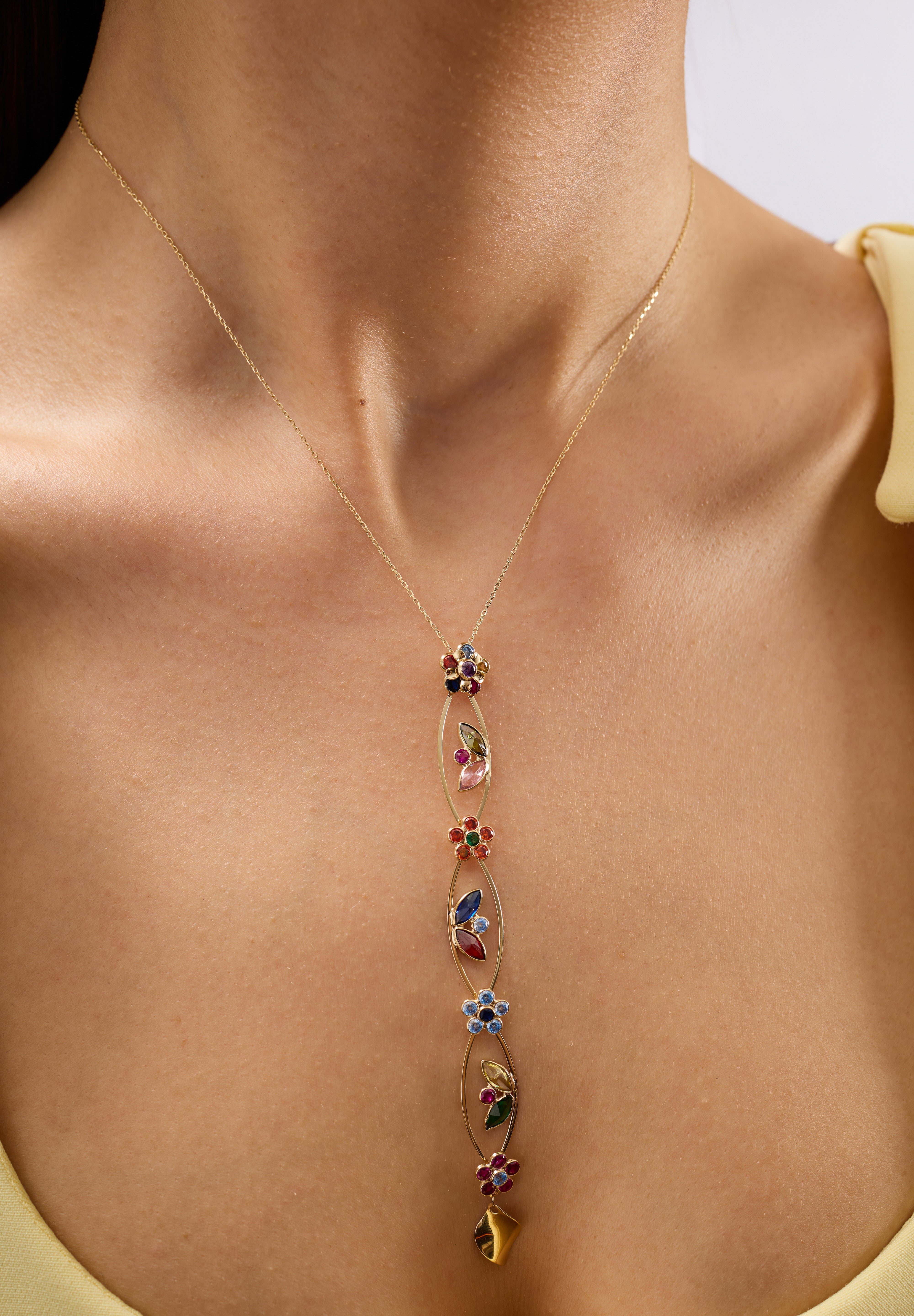 14 ayar altının sıcak ışıltısı, canlı renkli taşların enerjisiyle birleşerek hem günlük stile sofistike bir zarafet katar hem de özel anlarda anlamlı bir parıltı yaratır. Renklerin uyumu; yaratıcılığı, neşeyi ve hayallerin peşinden gitme cesaretini temsil ederken zarif hatlarıyla zamansız bir şıklık sunar.
