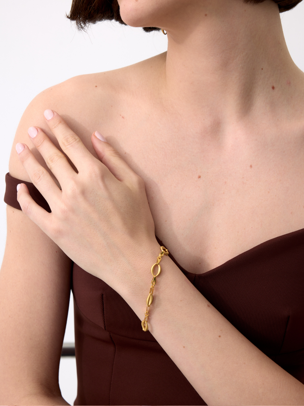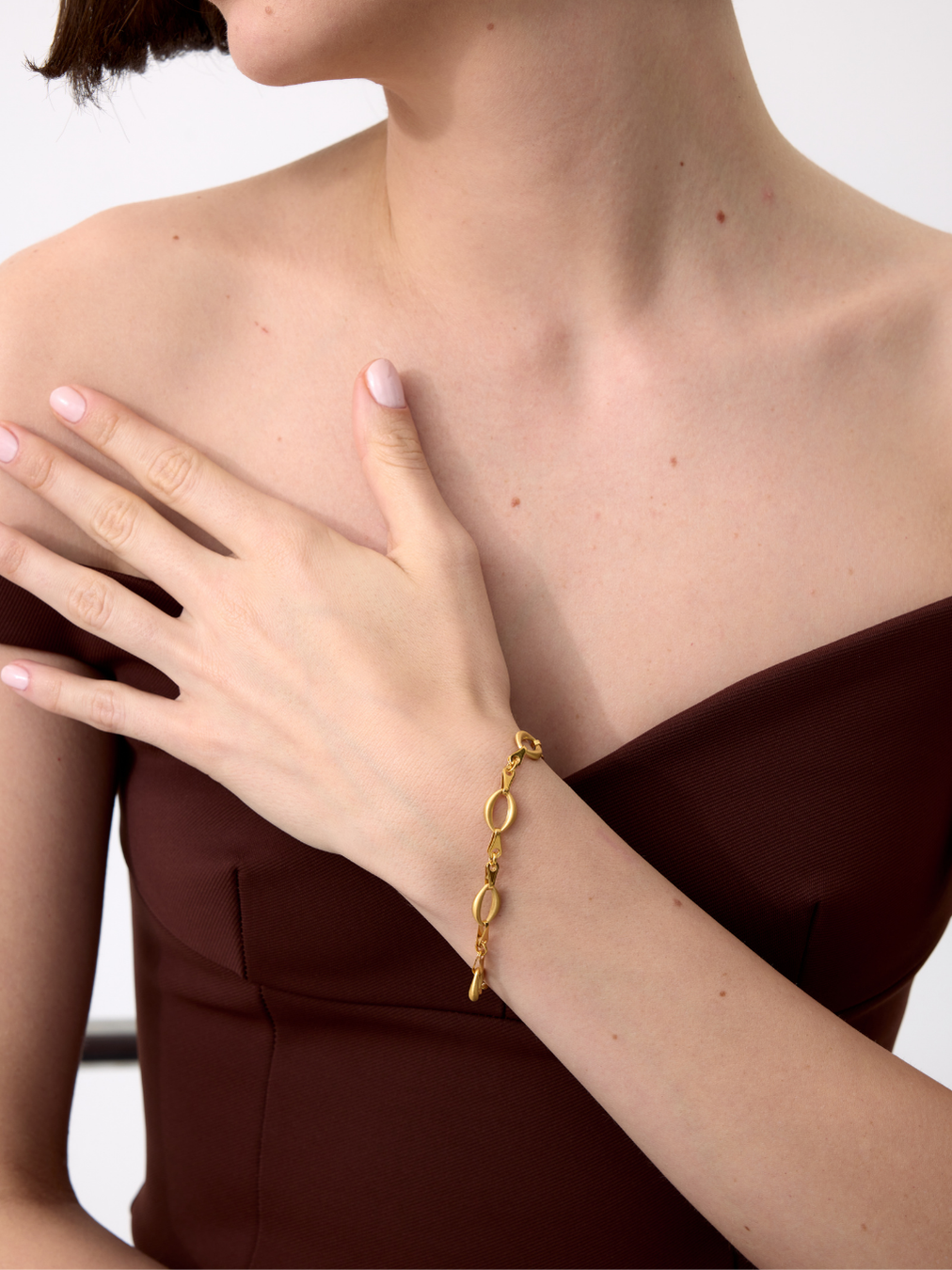 Oval Paperclip Altın Vermeil Kadın Bileklik ile tanışın. Zarif oval halkalarla tasarlanan bu modern bileklik, sade çizgilerle güçlü bir ifade sunar. İnce ama kararlı bir duruş.