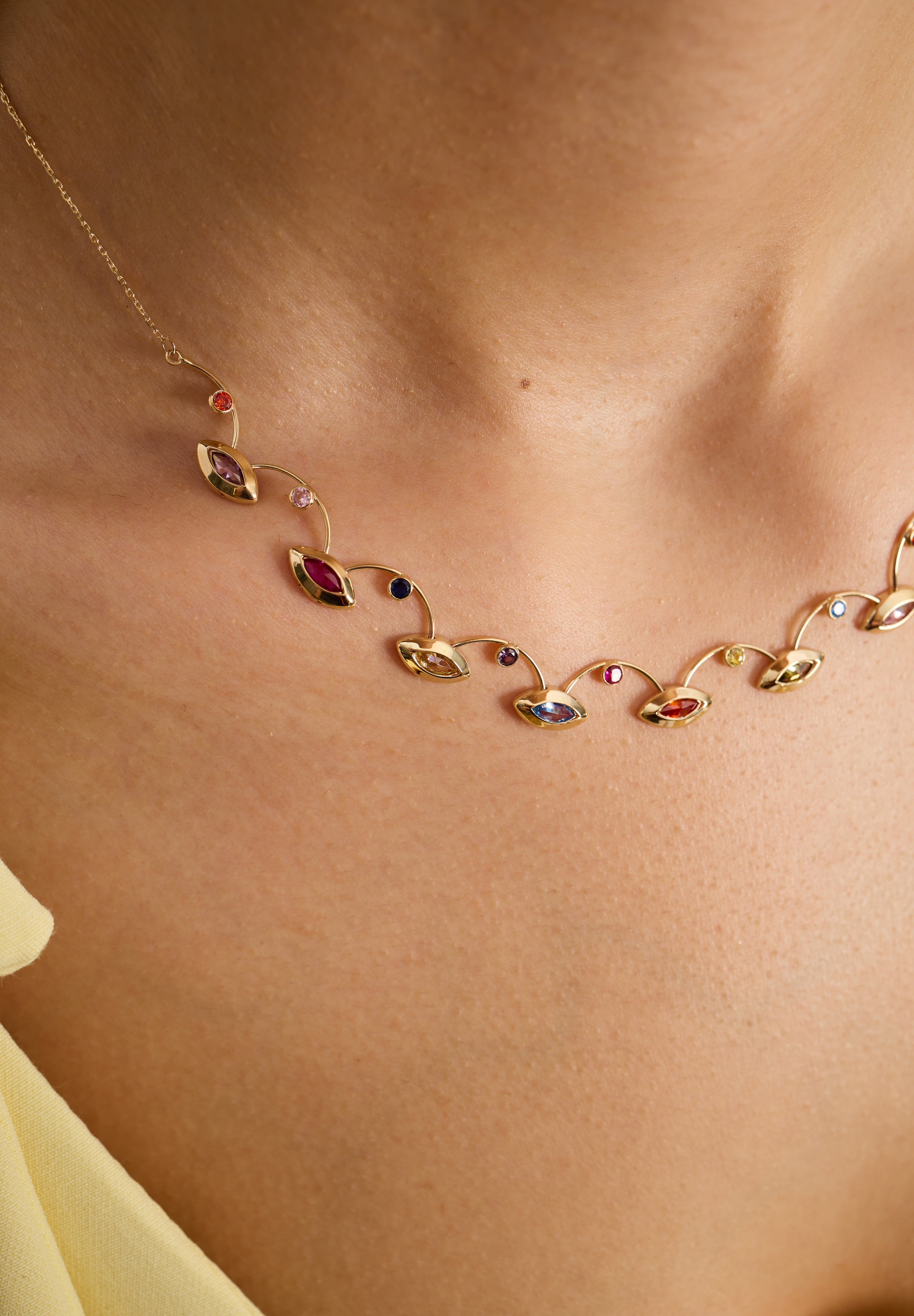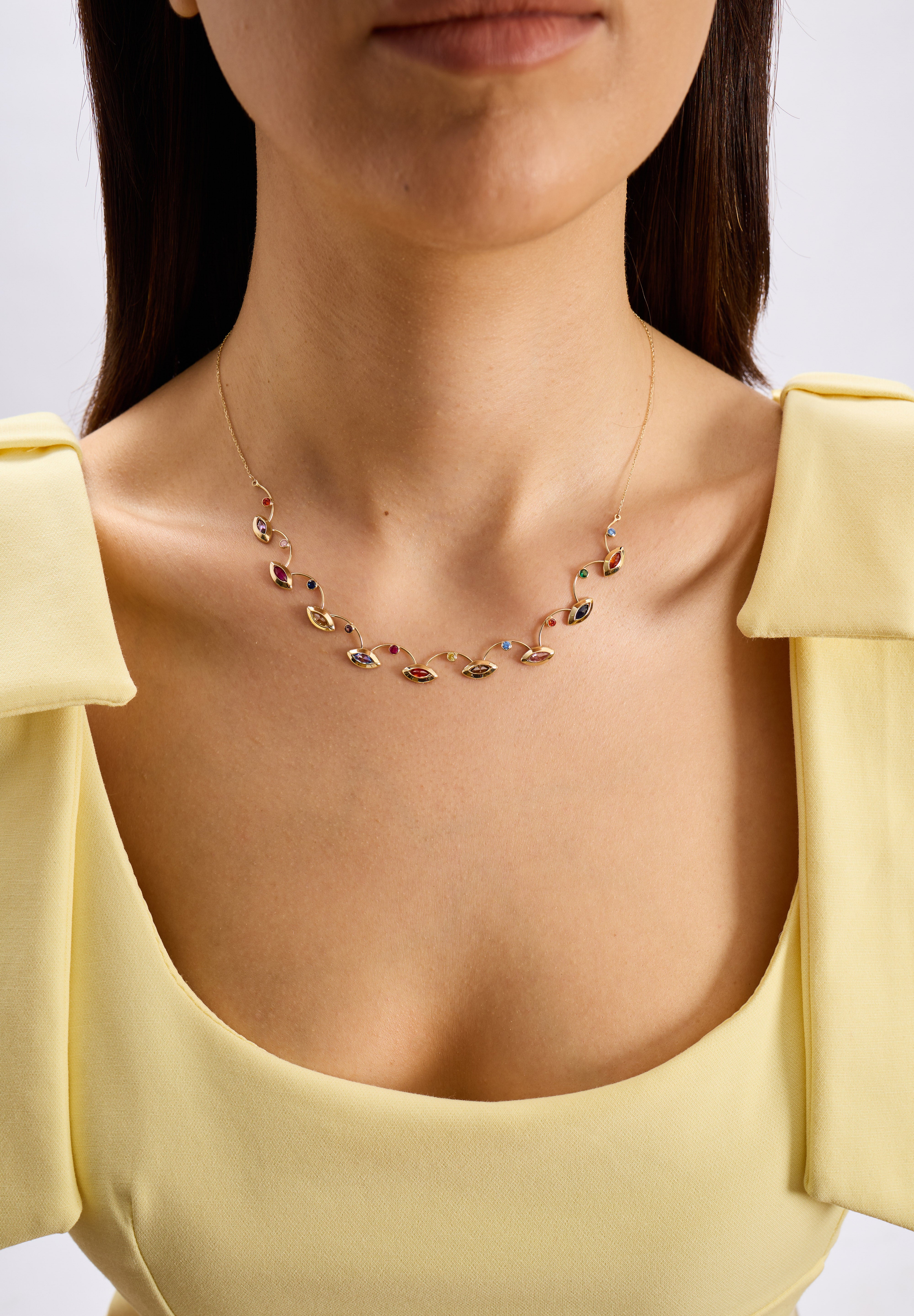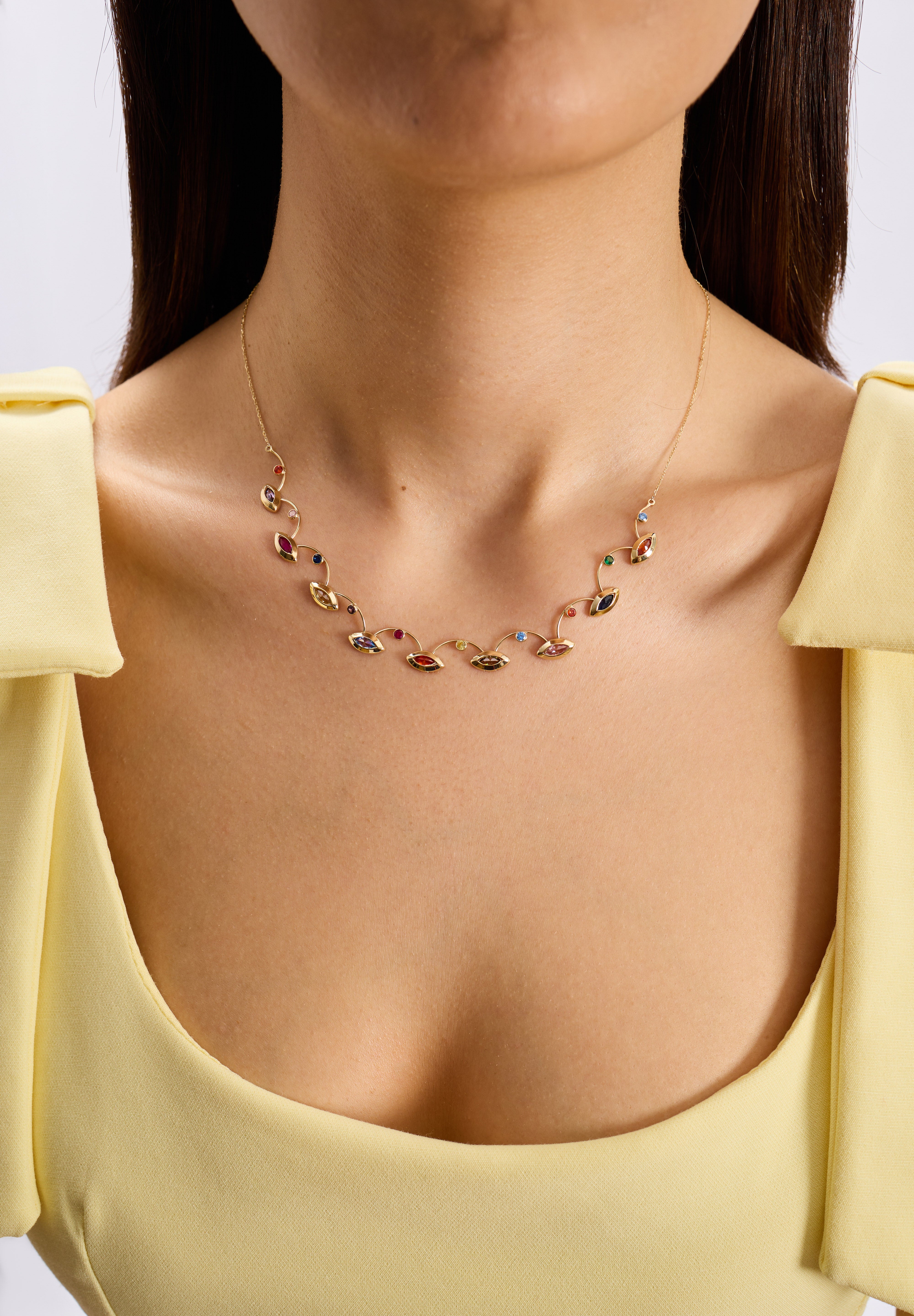 Paradise Eyes 14 Ayar Altın Kadın Kolye; ışığın rehberliğini, farkındalığı ve koruyucu enerjiyi simgeleyen büyüleyici bir tasarımdır. “Paradise” ilhamını cennet bahçelerinin huzurundan, göz formunu ise sezgisel bilgelik ve ruhsal uyanıştan alır. Bu özel parça, hem içsel dinginliği hem de zarif bir gücü bir arada taşır.