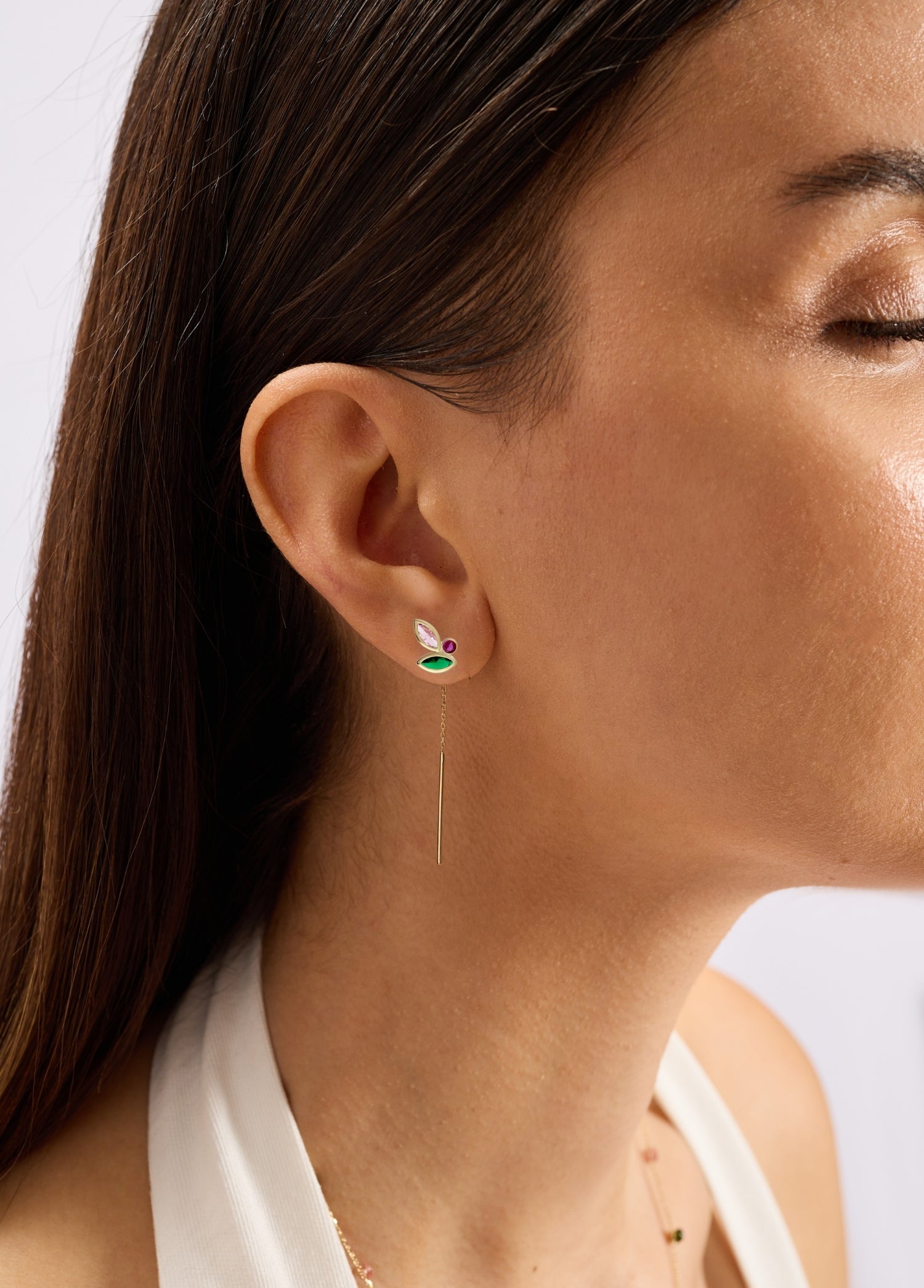 14 ayar altının sıcak ışıltısı, yaprak formundan ilham alan yumuşak hatlarla birleşerek hem günlük stile zarif bir incelik katar hem de özel anlarda sofistike bir parıltı yaratır. Hafif ve akıcı formu, her hareketle ışığı nazikçe yansıtır.