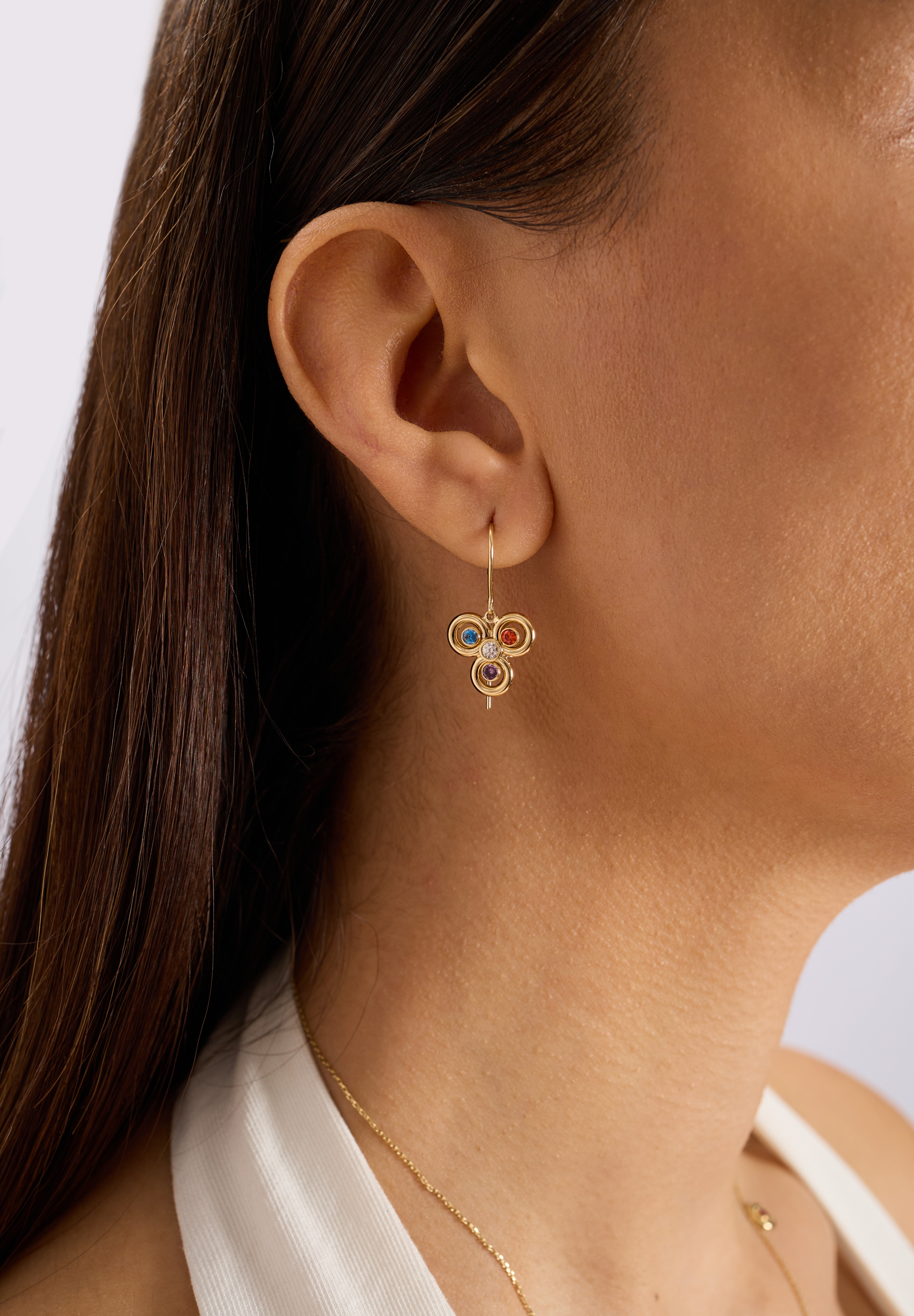 Pırlanta Taşlı Çintemani 14 Ayar Altın Kadın Küpe; köklü bir sembolün gücünü, ışığın saflığını ve modern zarafeti bir araya getiren özel bir tasarımdır. Çintemani motifi, yüzyıllardır koruma, güç, bilgelik ve iyi talihin simgesi olarak kabul edilir; bu tasarımda pırlantaların göz alıcı parıltısıyla birleşerek hem estetik hem de anlam yönünden zengin bir ifade sunar.