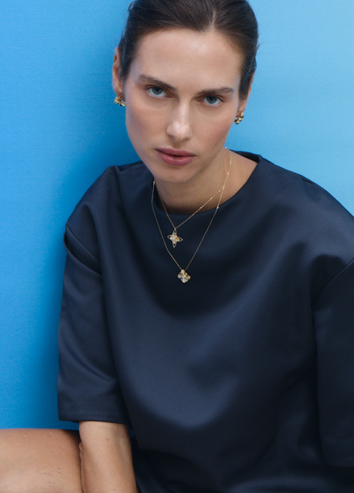 Koleksiyonumuzdaki her ürün, 14 ayar gerçek altından özenle üretilmektedir. Gerçek altın kullanma konusundaki bu kararlılığımız, her bir parçanın yalnızca estetik açıdan zarif olmasını değil, aynı zamanda dayanıklı ve uzun ömürlü olmasını da sağlar. Bu da tasarımlarımızı her takı koleksiyonuna değer katan özel birer parça haline getirir.