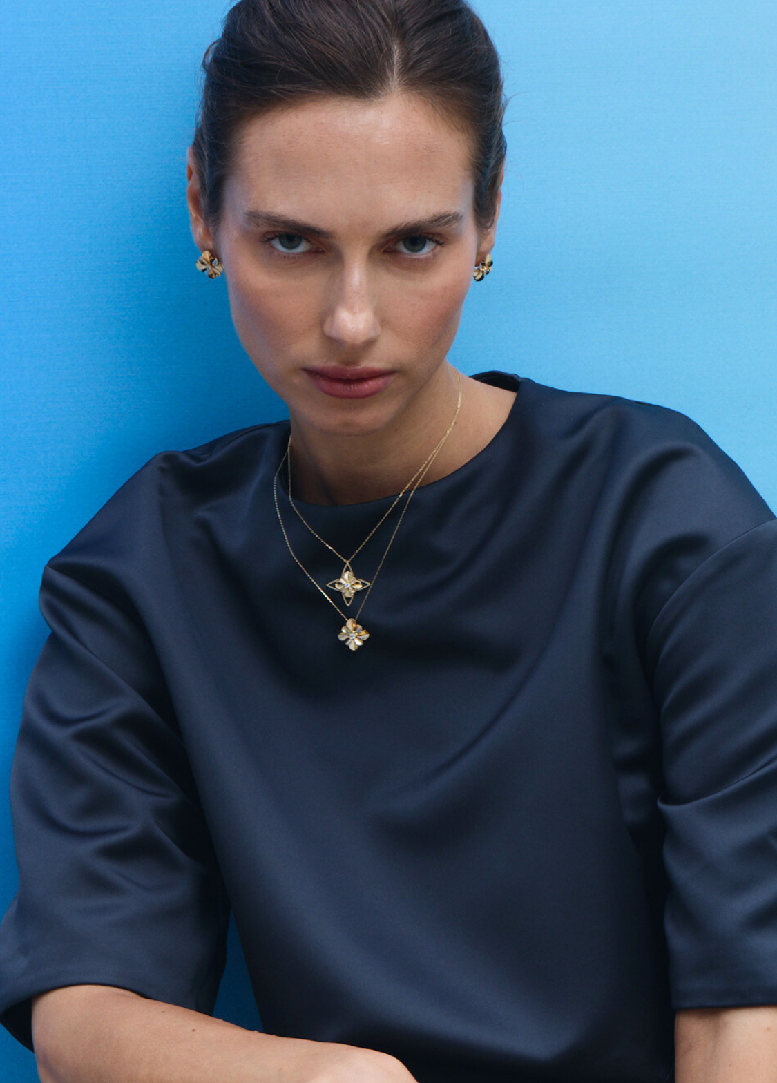 14 ayar altının sıcak ışıltısı, pırlantaların saf parıltısıyla birleşerek hem günlük stile zarif bir incelik katar hem de özel anlarda anlamlı bir ışıltı yaratır. Lotus formu; yeniden doğuşu, bilgelik arayışını ve dinginliği modern bir mücevher estetiğiyle yansıtır.