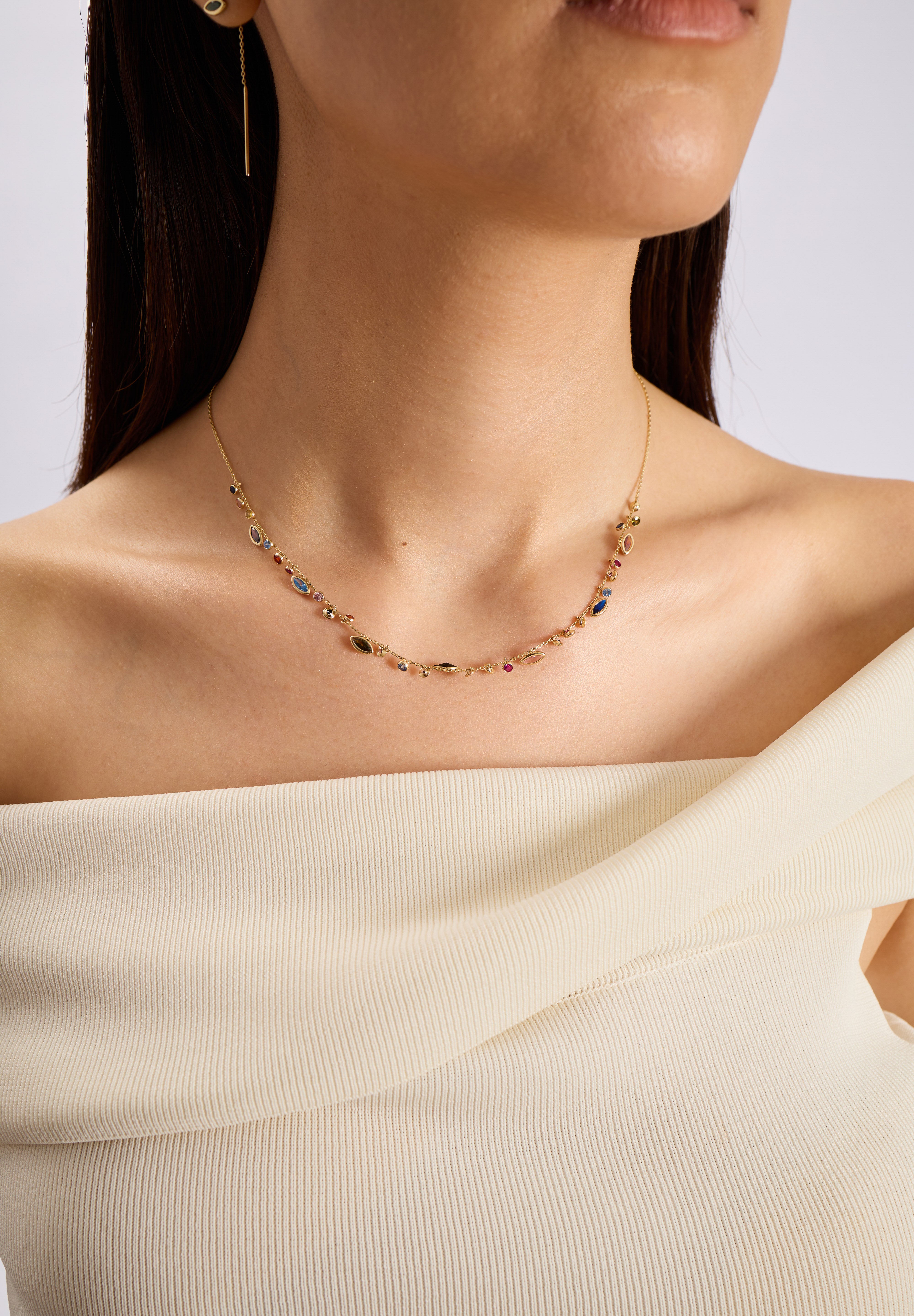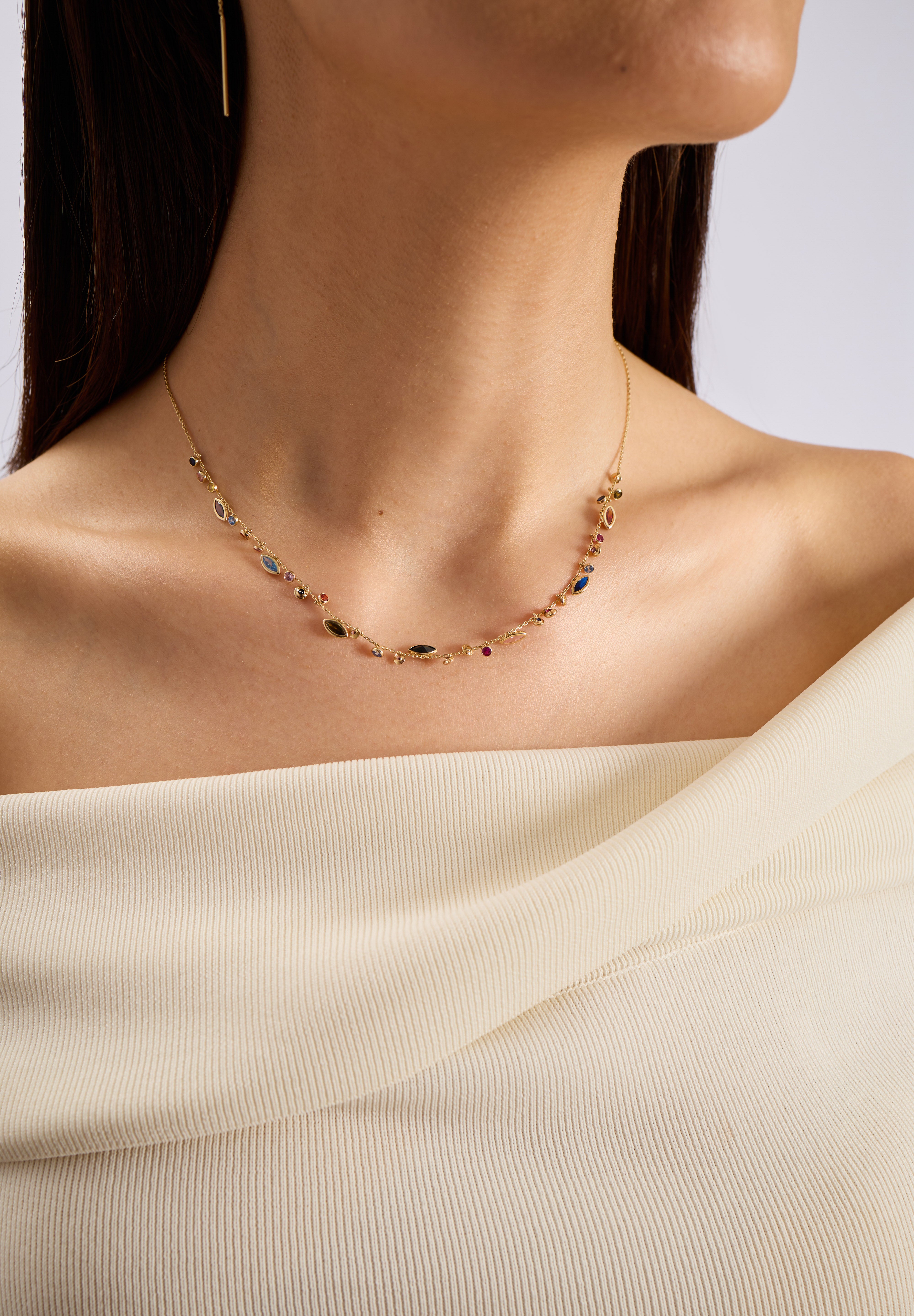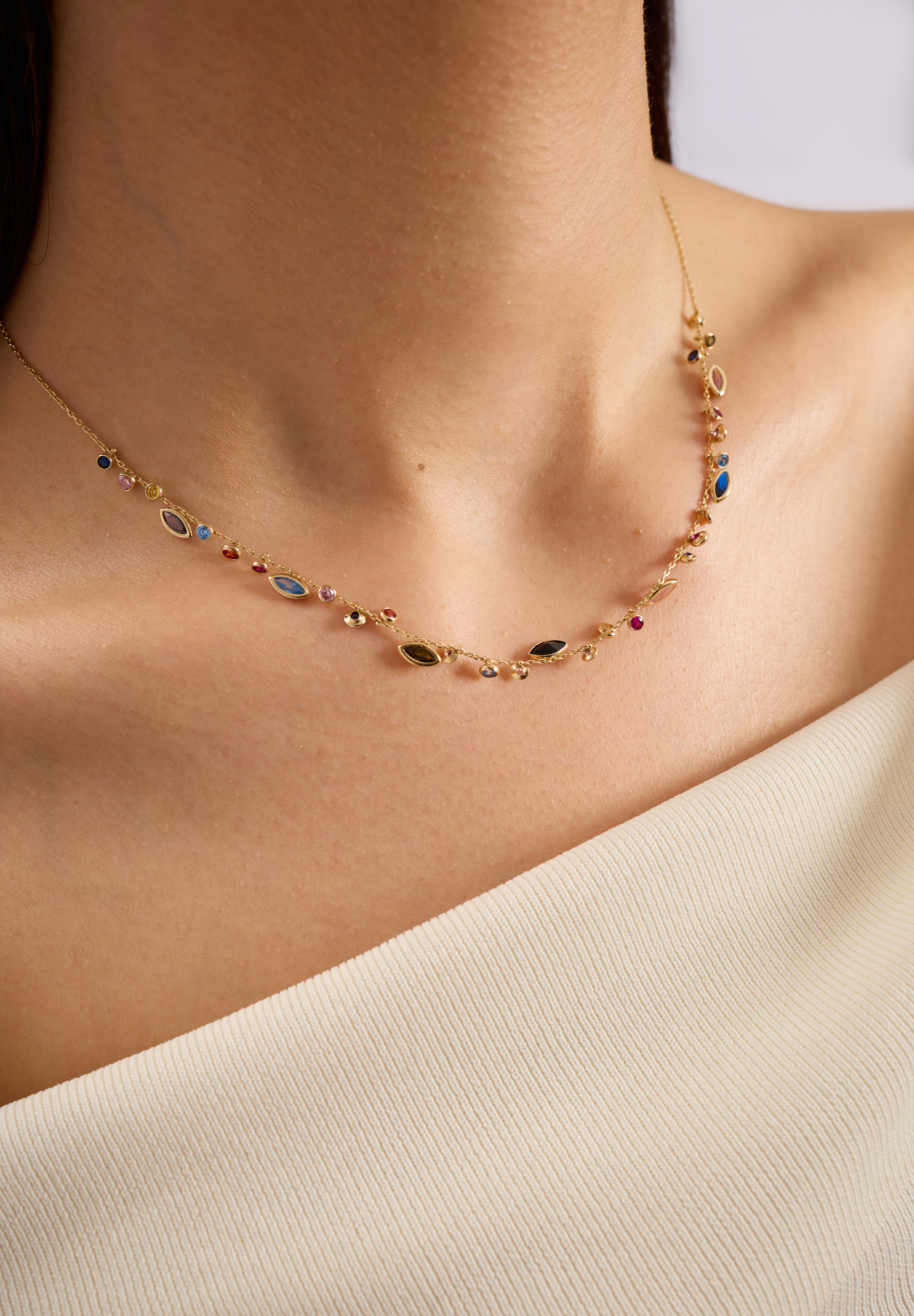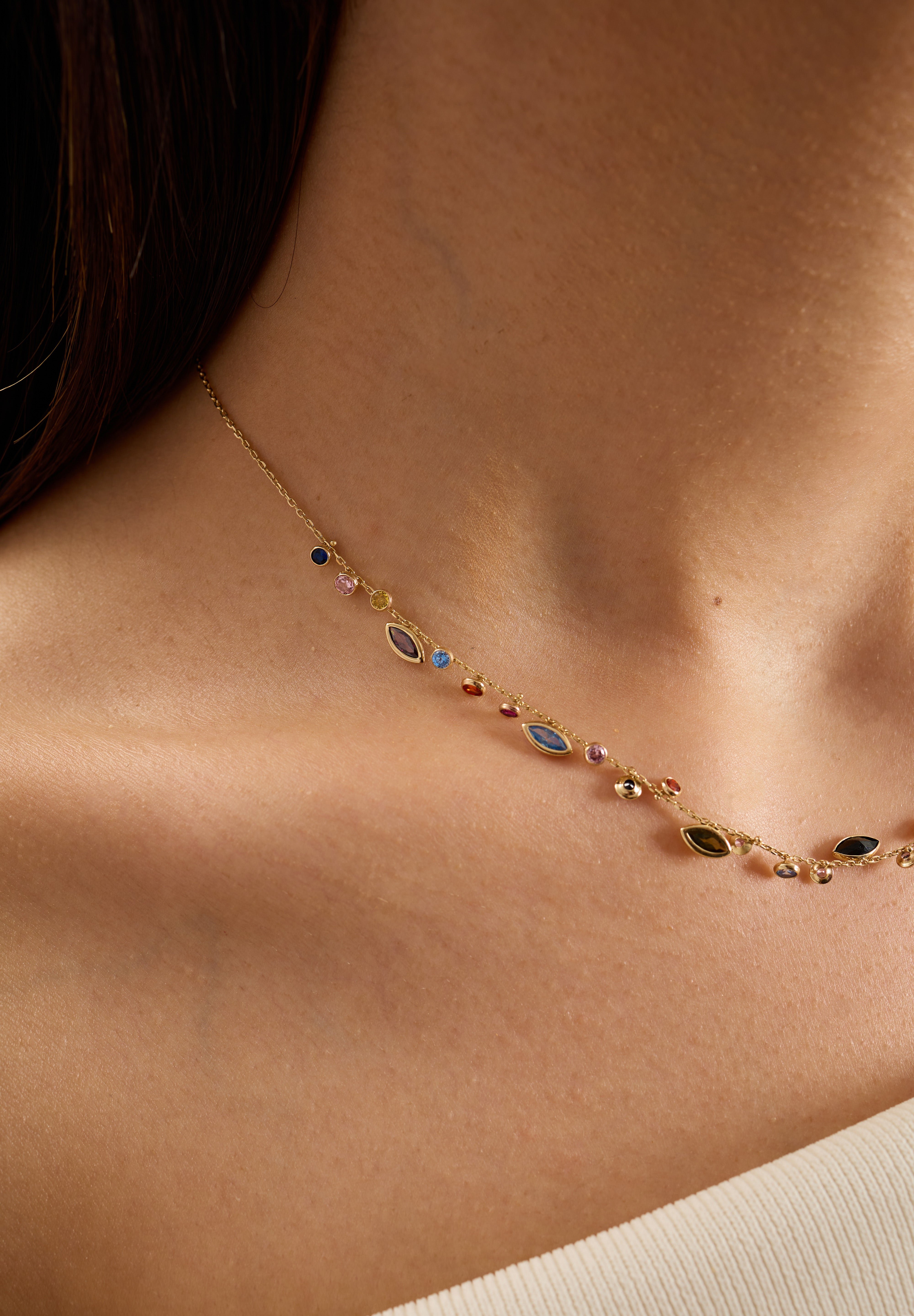 Rainbow Cluster 14 Ayar Altın Kadın Kolye