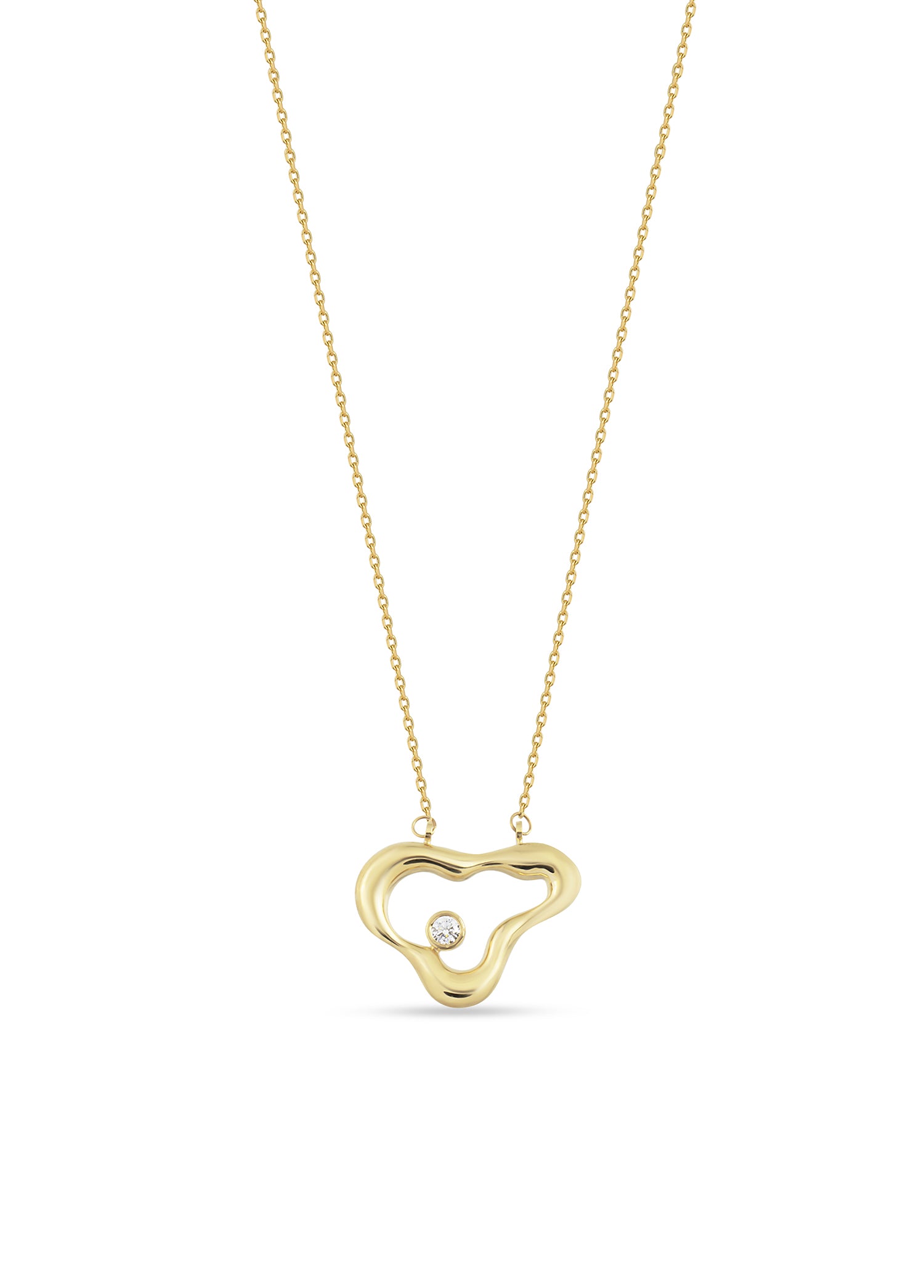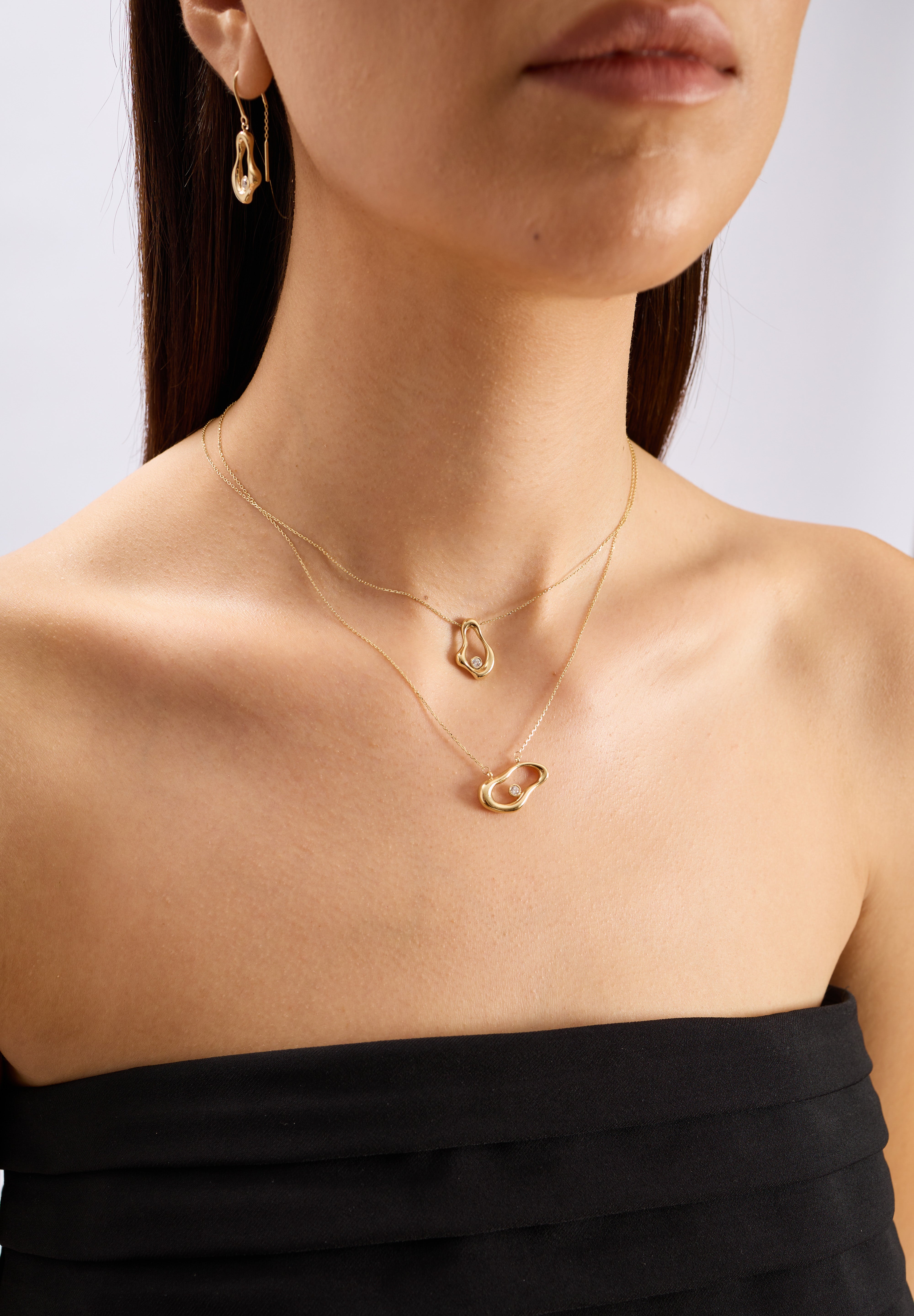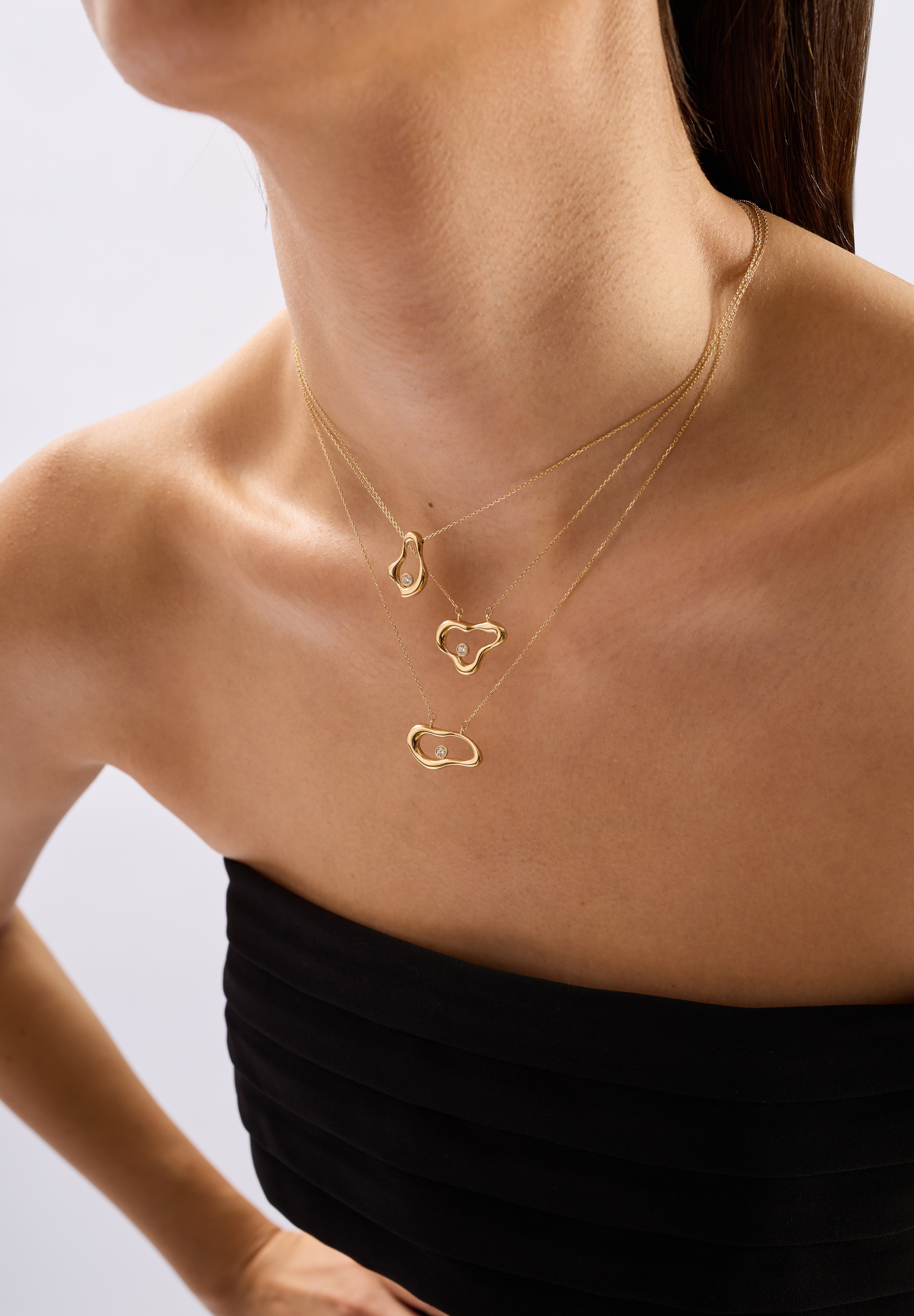 River Pırlanta Taşlı 14 Ayar Altın Kadın Kolye; hayatın akışını, içsel dinginliği ve zarif bir gücü simgeleyen özel bir tasarımdır. Nehrin kesintisiz hareketinden ilham alan bu parça, değişimle uyumlanma, yenilenme ve ruhun kendi yolunu bulma gücünü modern bir yorumla yansıtır.