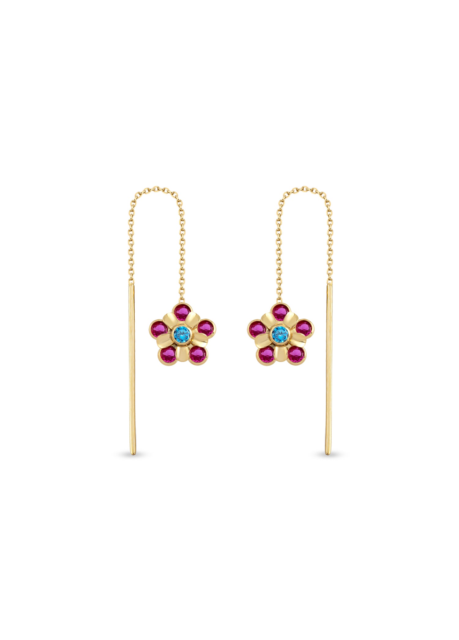 Ruby Daisy 14 Ayar Altın Kadın Küpe