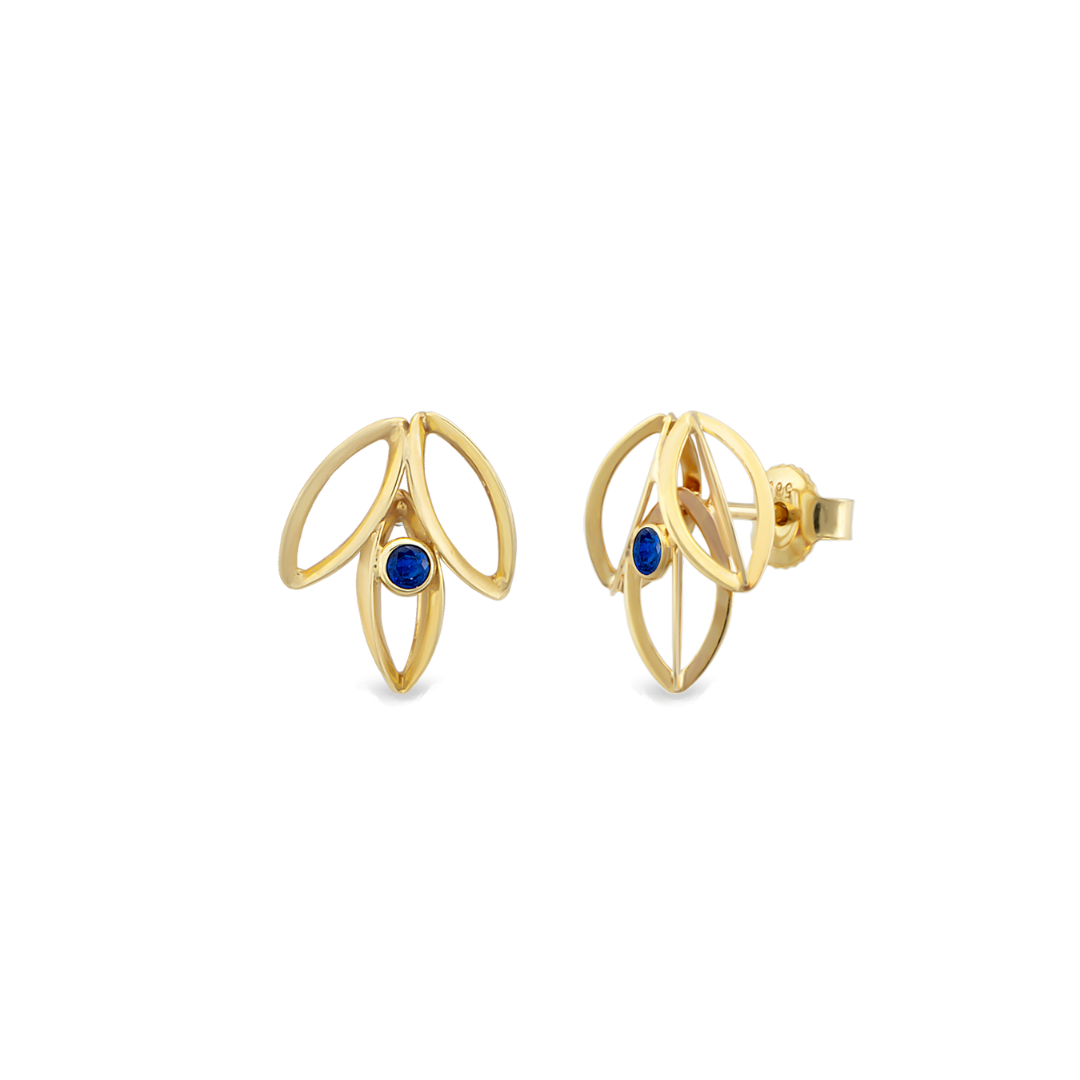 Sapphire Lotus 14 Ayar Altın Kadın Küpe