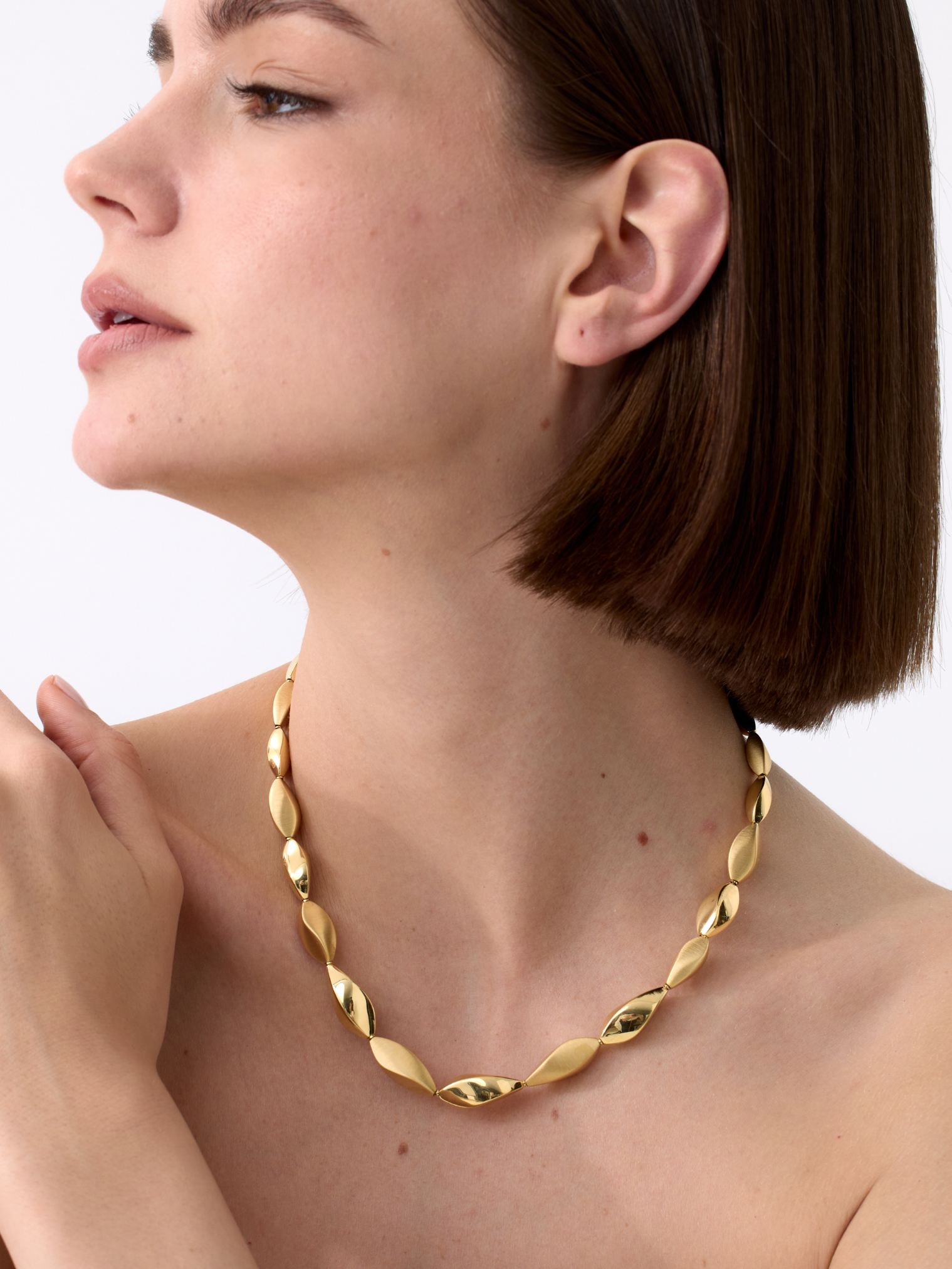 Koleksiyonumuzdaki her ürün, 14 ayar gerçek altından özenle üretilmektedir. Gerçek altın kullanma konusundaki bu kararlılığımız, her bir parçanın yalnızca estetik açıdan zarif olmasını değil, aynı zamanda dayanıklı ve uzun ömürlü olmasını da sağlar. Bu da tasarımlarımızı her takı koleksiyonuna değer katan özel birer parça haline getirir.