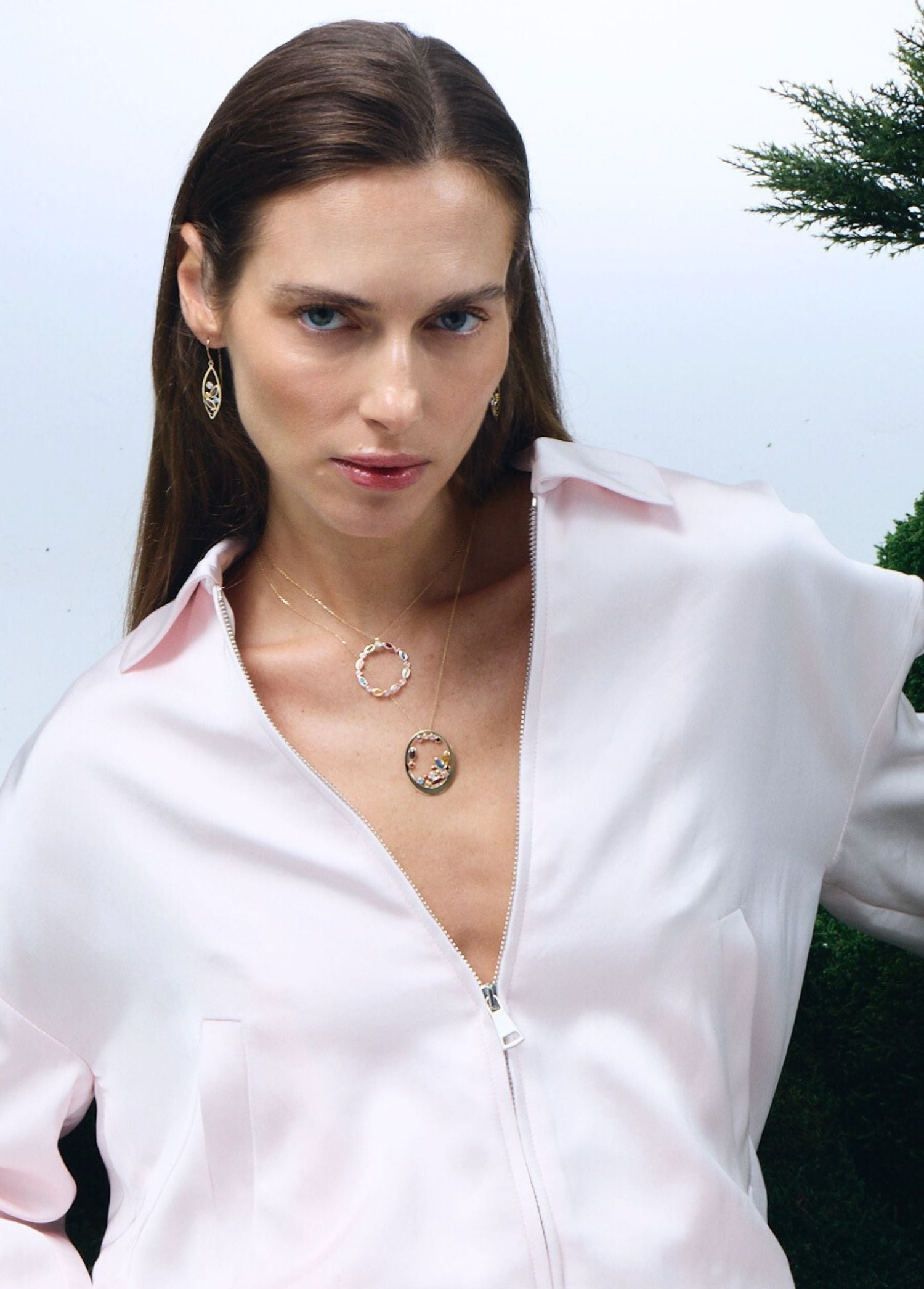 Stellar Garden 14 Ayar Altın Kadın Kolye; doğanın canlılığını, yıldızların ışığını ve zarafetin evrensel uyumunu simgeleyen özel bir tasarımdır. “Stellar” ilhamını gökyüzünün parlayan yıldızlarından, “Garden” ise doğanın büyüleyici düzeninden alır. Bu birleşim, evrenin kusursuz dengesini ve ışığın yaşamla kurduğu zarif bağı temsil eder.