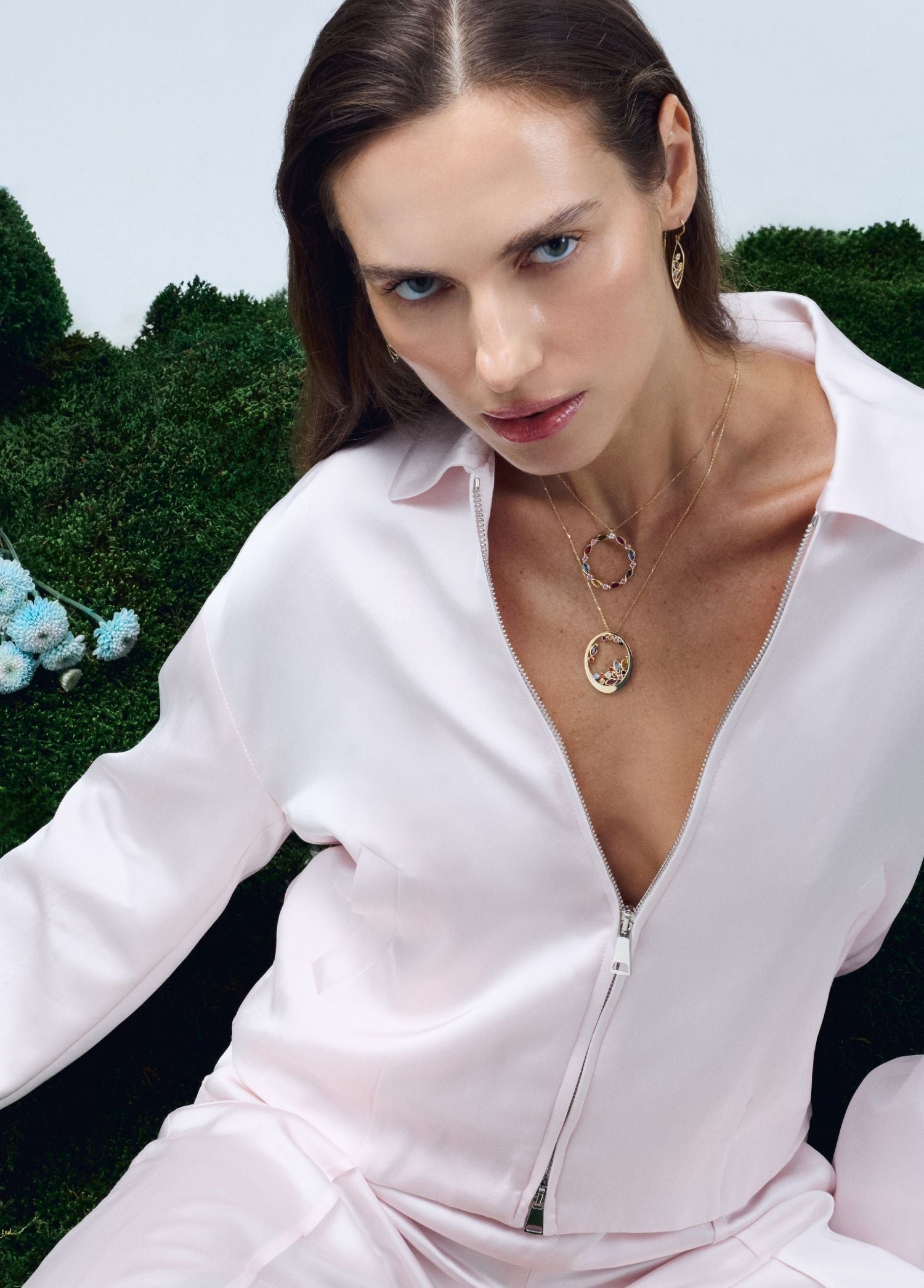 14 ayar altının sıcak ışıltısı, yıldızlardan esinlenen detaylarla birleşerek hem günlük stile zarif bir parıltı katar hem de özel anlarda anlamlı bir ışık oyununa dönüşür. Tasarım, gökyüzüyle yeryüzü arasındaki gizemli bağı modern bir mücevher formunda yeniden yorumlar.