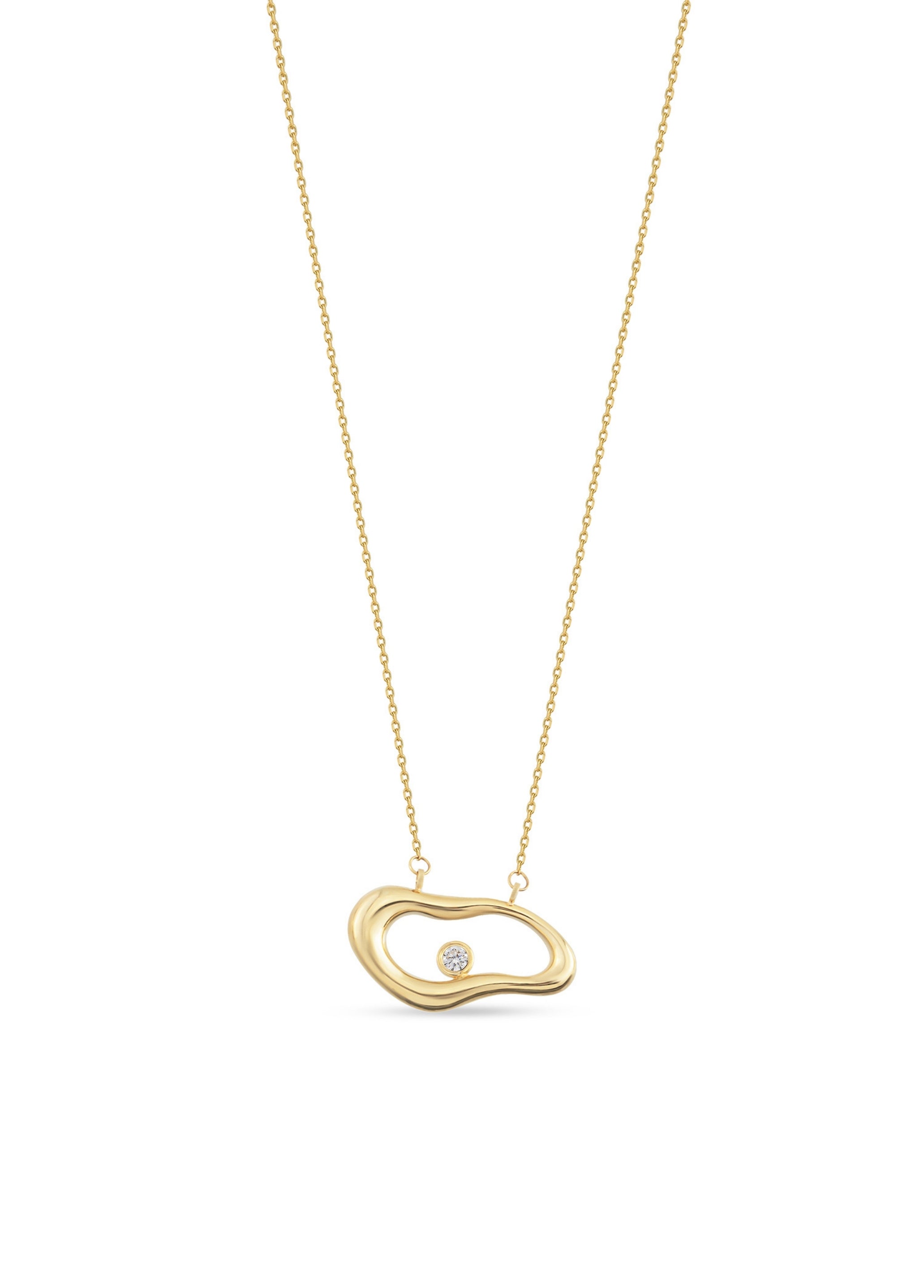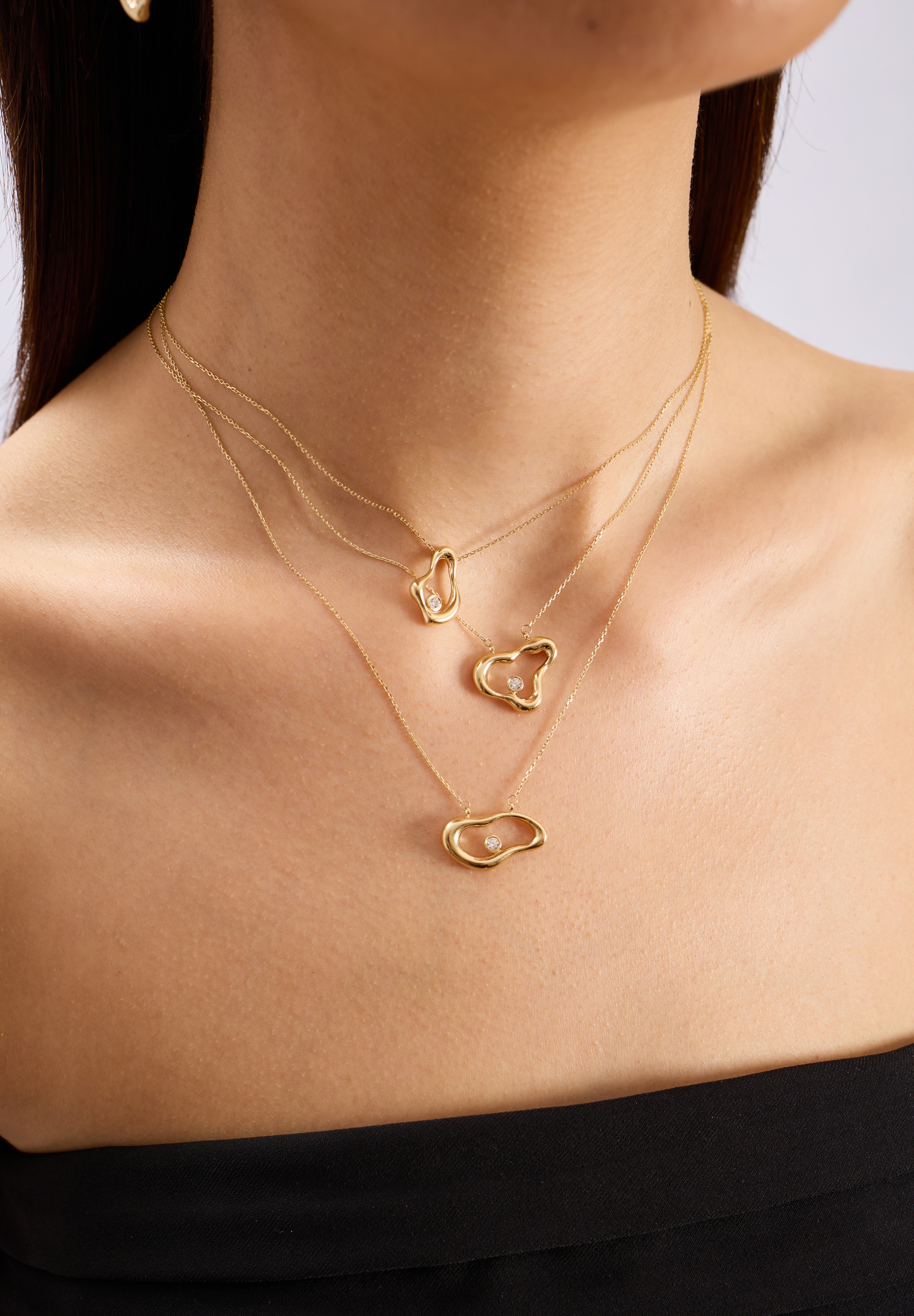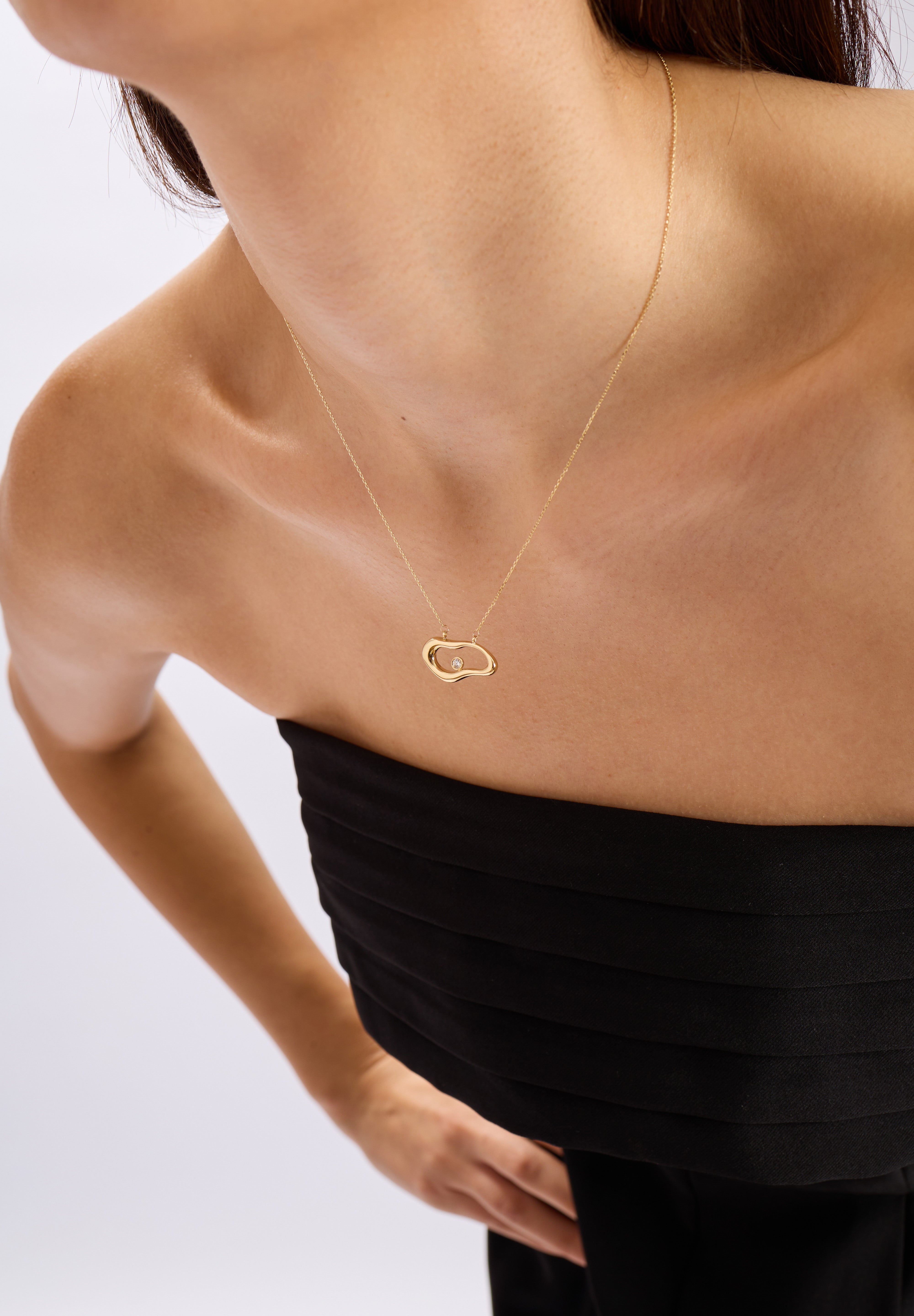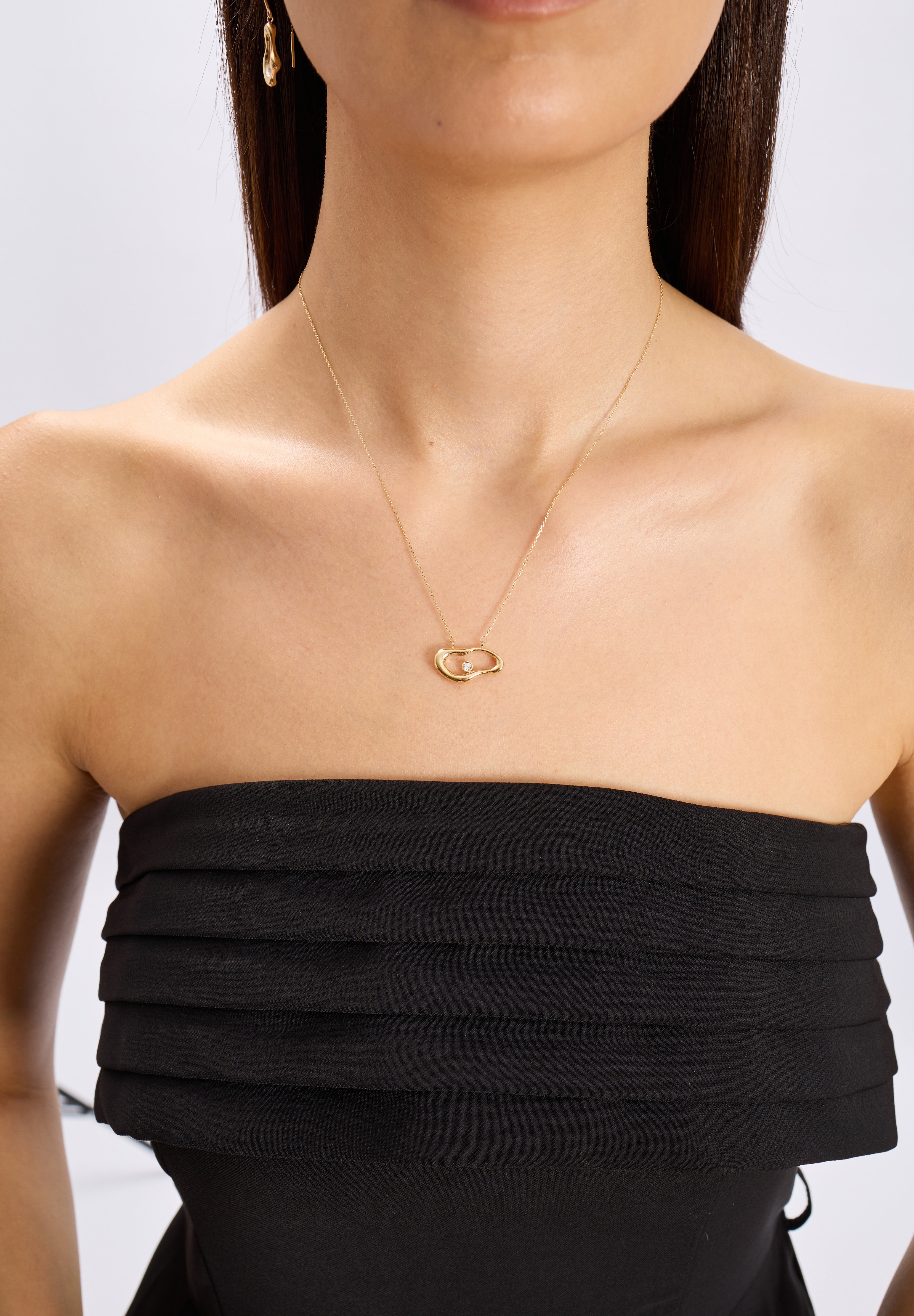 Valley Pırlanta Taşlı 14 Ayar Altın Kadın Kolye; dinginliği, içsel gücü ve doğanın sessiz zarafetini yansıtan sofistike bir tasarımdır. Vadilerin huzur veren akışından ilham alan bu özel parça, hayatta dengeyi bulmayı, köklenmeyi ve kendi yolunda sakin bir güçle ilerlemeyi simgeler