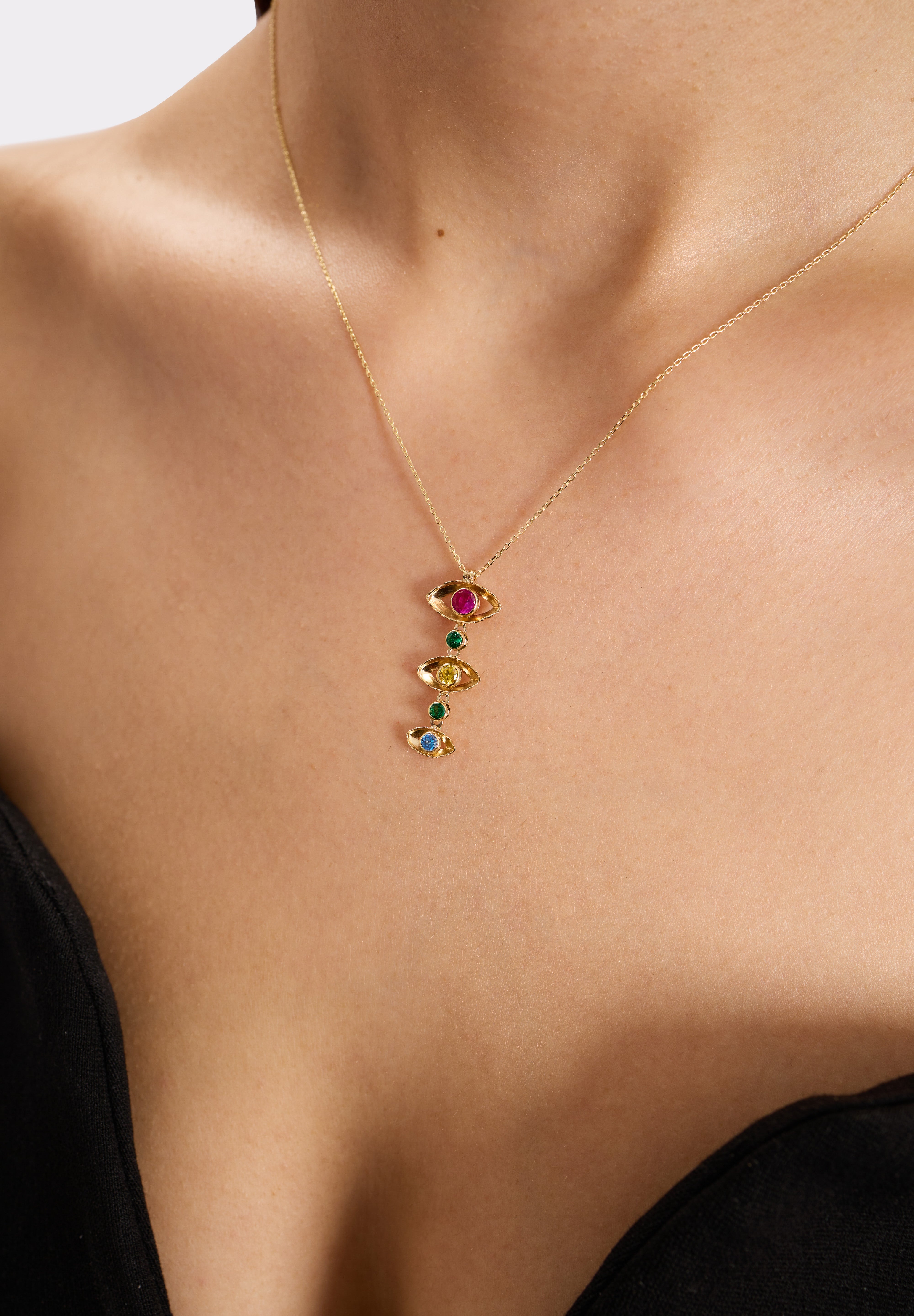 Vera Eyes 14 Ayar Altın Kadın Kolye; gerçeğin, farkındalığın ve içsel ışığın simgesi olarak tasarlanmıştır. “Vera” Latince’de “hakikat” anlamına gelir; bu özel tasarımda göz formuyla birleşerek, içsel sezgiyi ve yaşamın derin anlamlarını görme gücünü temsil eder.